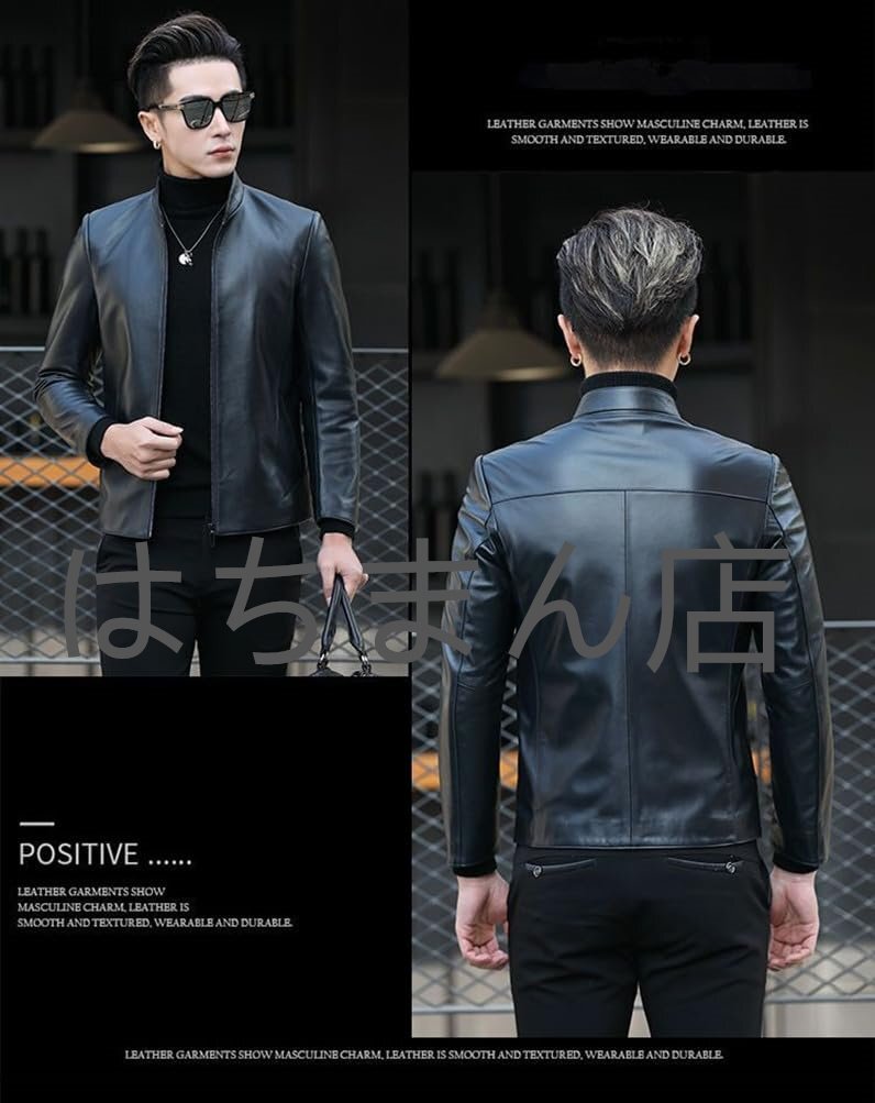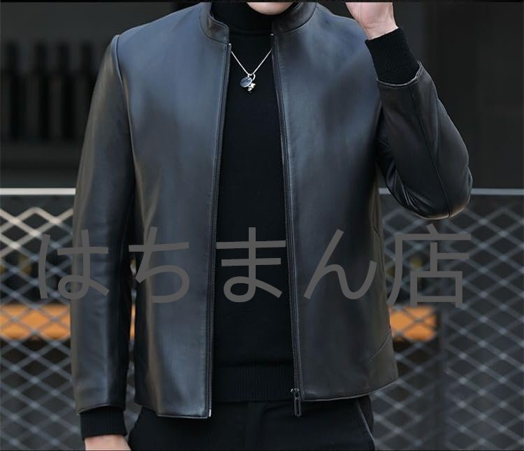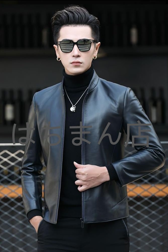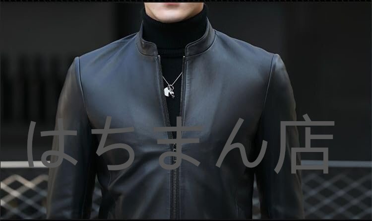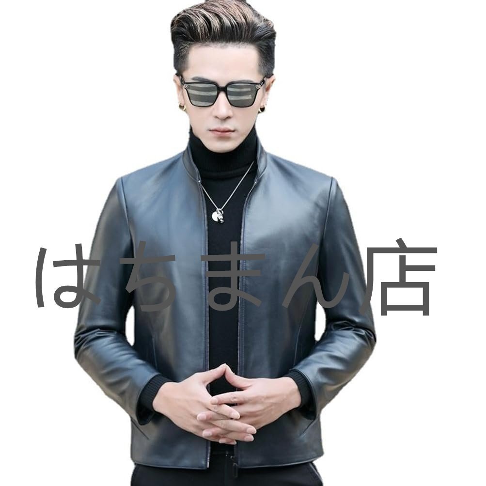 ライダースジャケット メンズ シープレザー シングルライダース 革ジャン 本革ジャケット 皮ジャケット 立て襟 秋冬 ブルー M-5XL