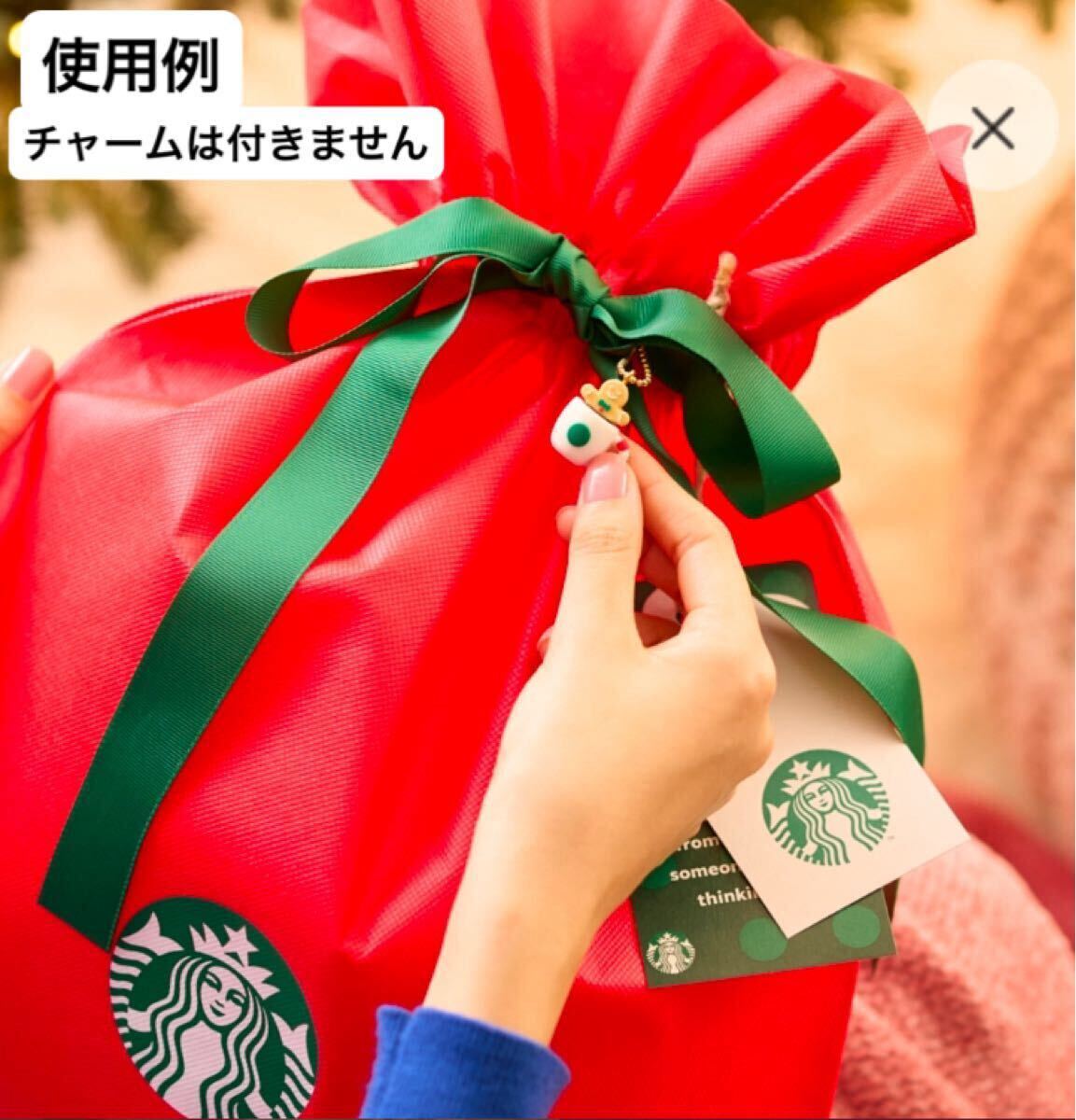 今季2024最新スターバックスのクリスマスラッピング袋です。オンラインで有料(660円)のラッピングを注文した際に届きましたホリデーバージョンの赤のギフト袋になります。