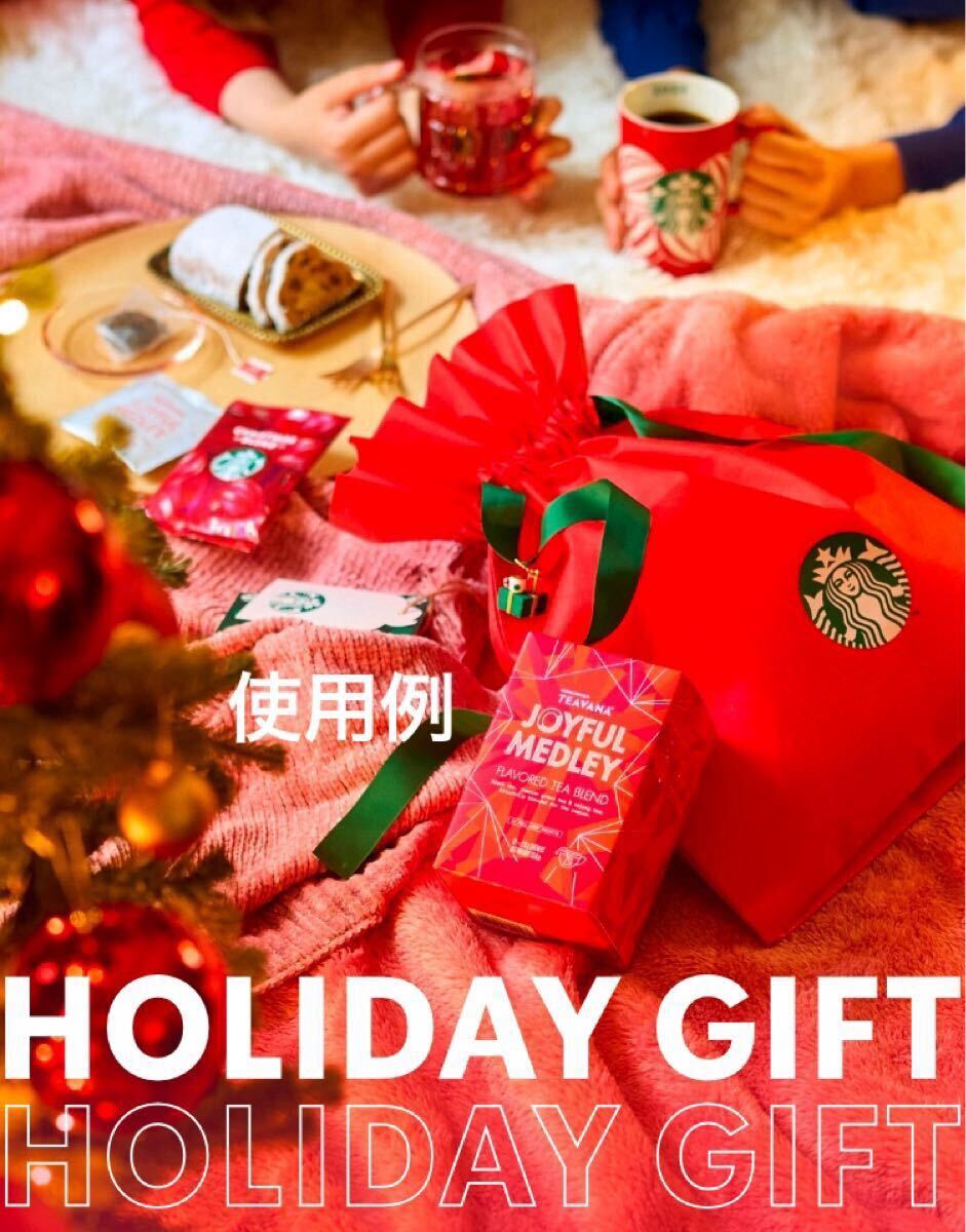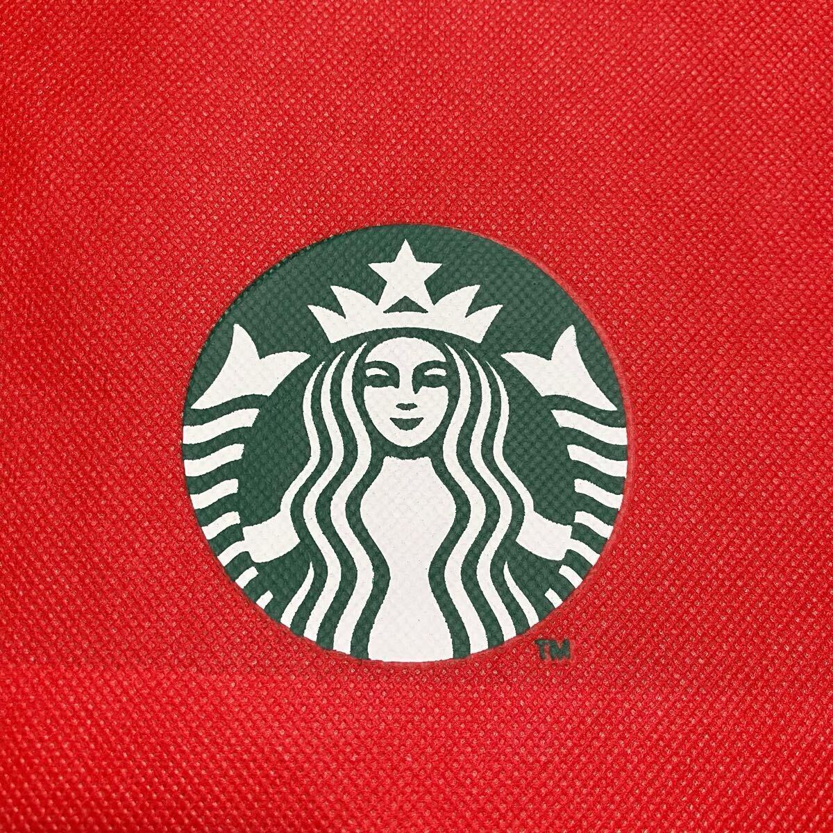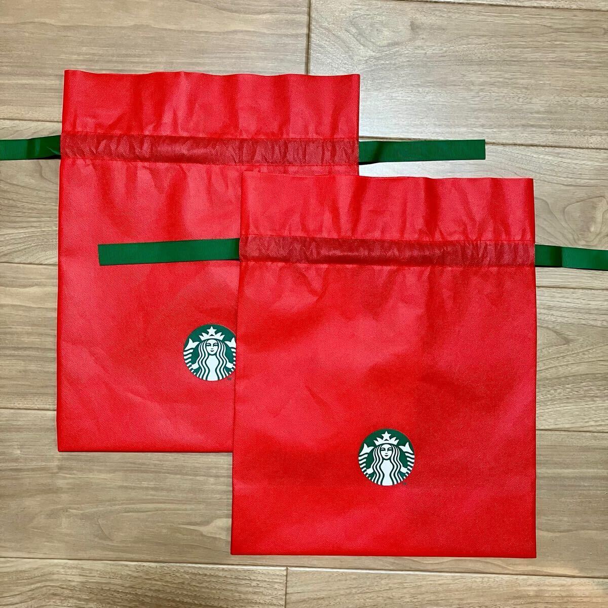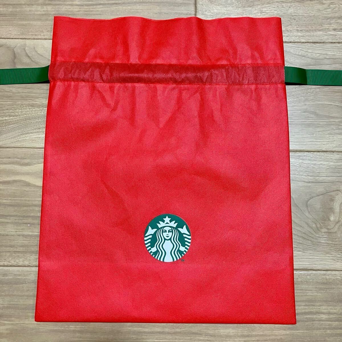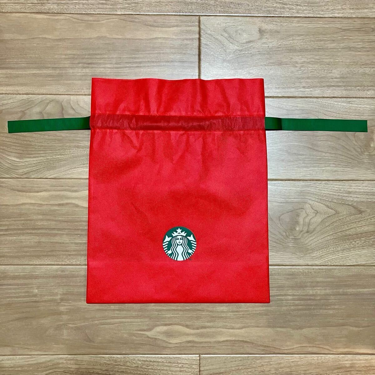 赤色ベースにスタバのロゴのグリーン色が映えるラッピングバッグです。赤×緑でホリデー気分満点のバッグです。