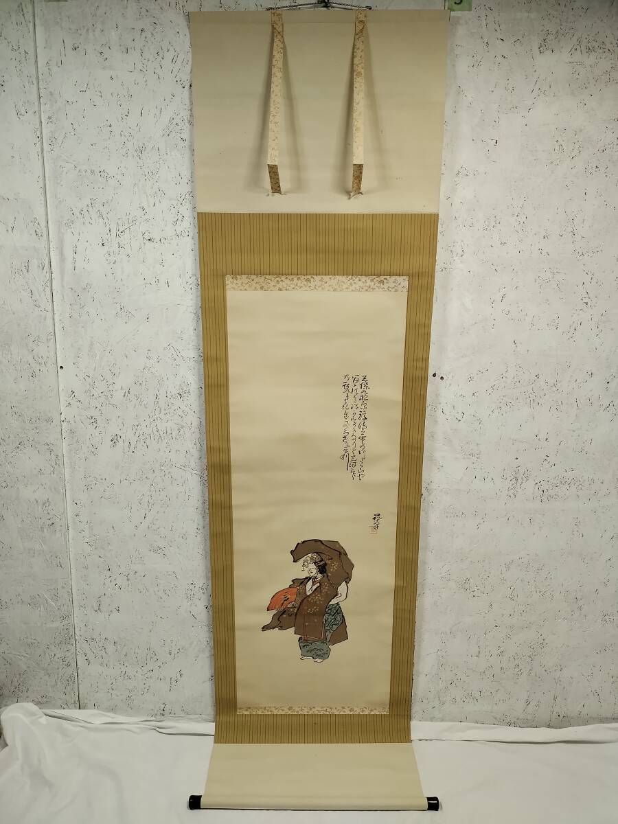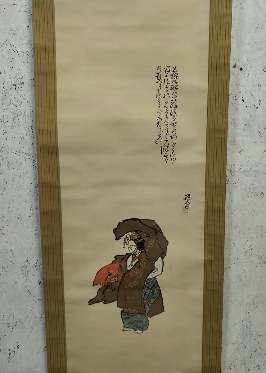 ⑰【真作】伊勢 門水■羽衣 約166×30㎝ 絹本 書/歌 掛軸/掛け軸 茶道 骨董・蔵出し