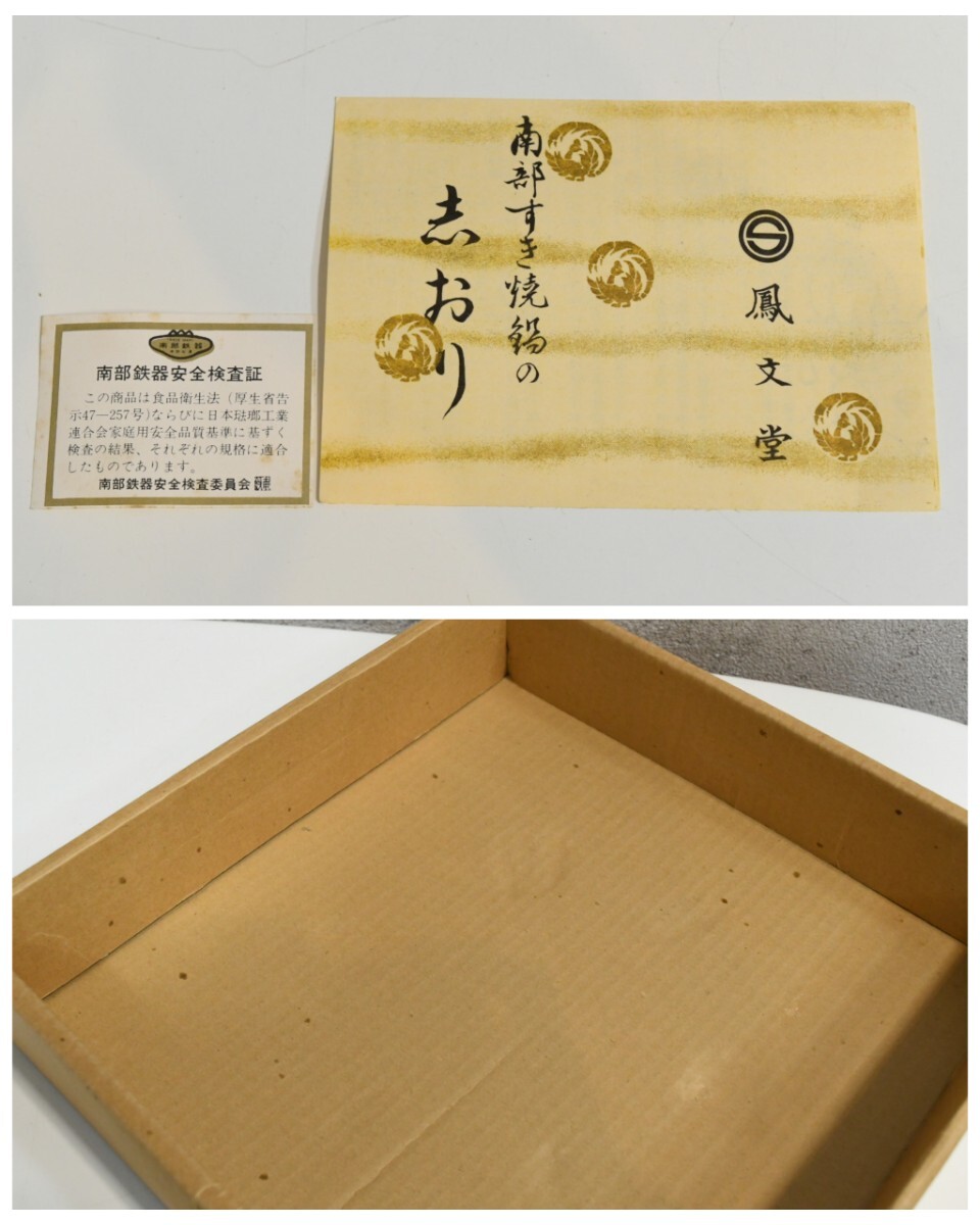 未使用 凰文堂 南部鉄器 すき焼き鍋 鉄鍋 両手鍋 ナベ 鳥 調理器具 炊事 食器 和風 工芸品 の出品です。