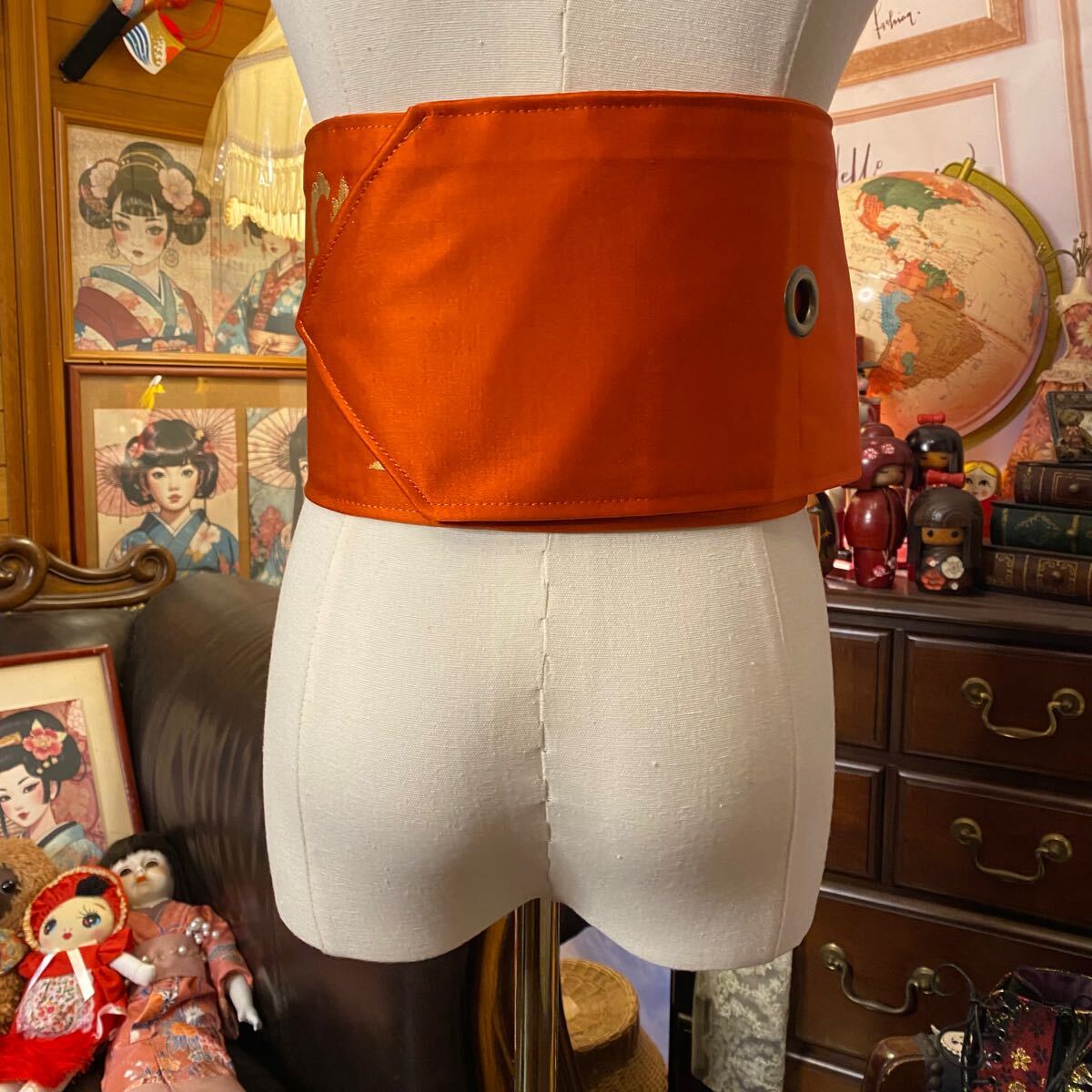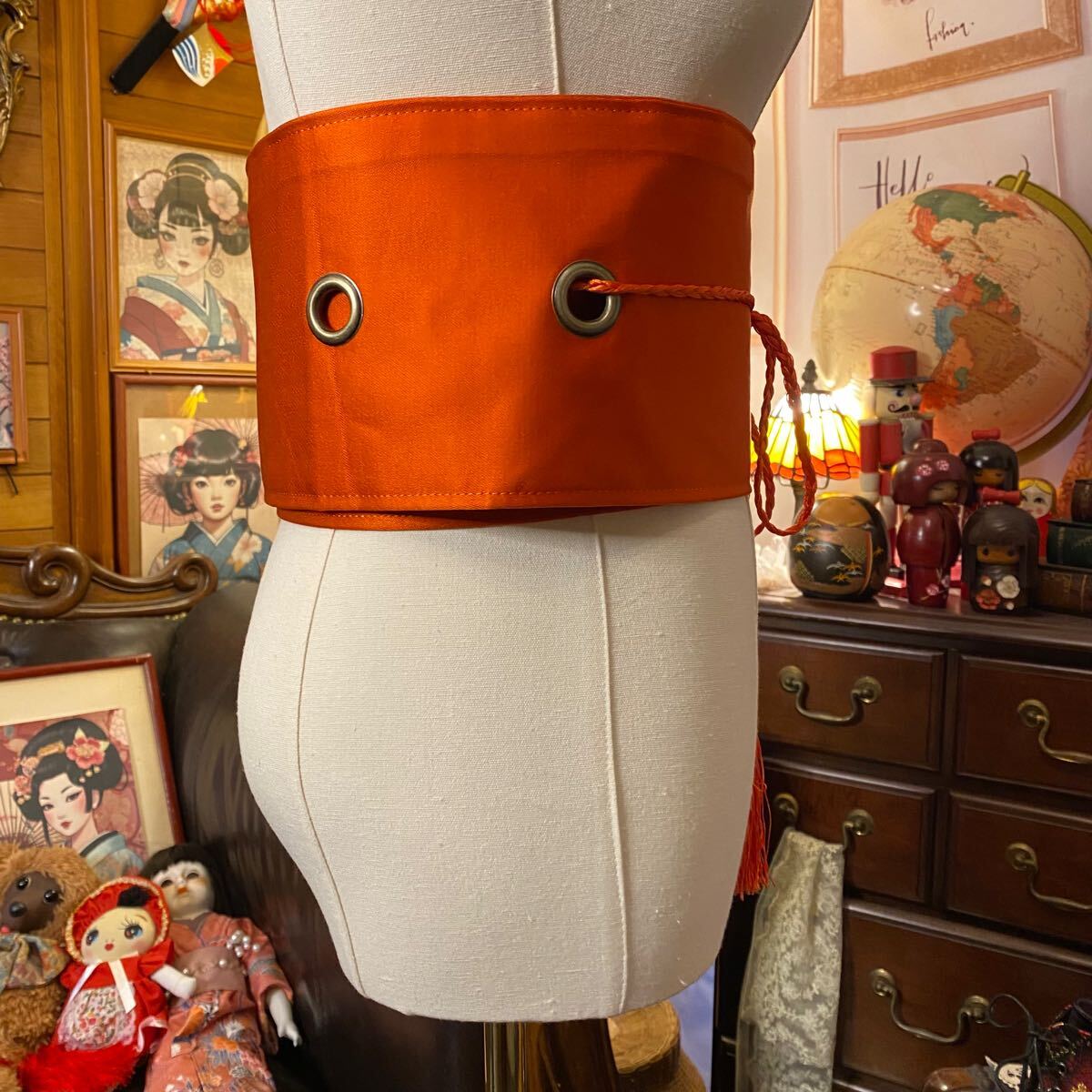 【 名古屋帯 着物 サッシュベルト 飾り帯 和洋折衷 ウエストマーク リメイク ハンドメイド レトロ 古着 L〜LL ROB-68 】
