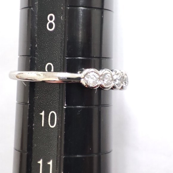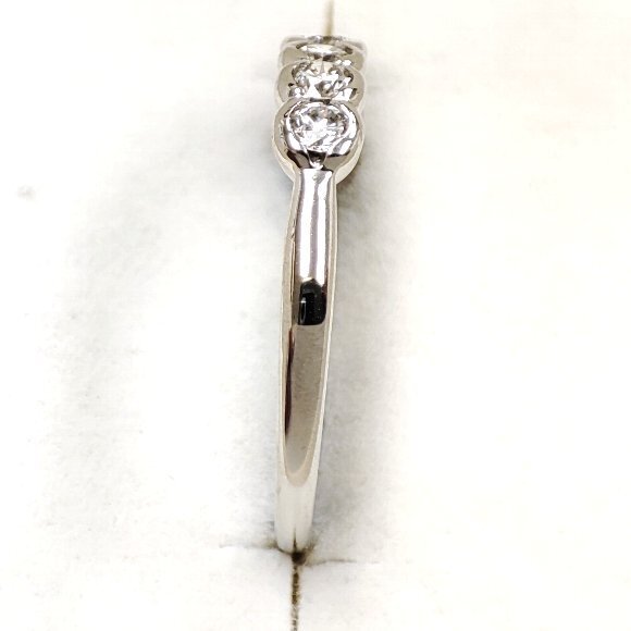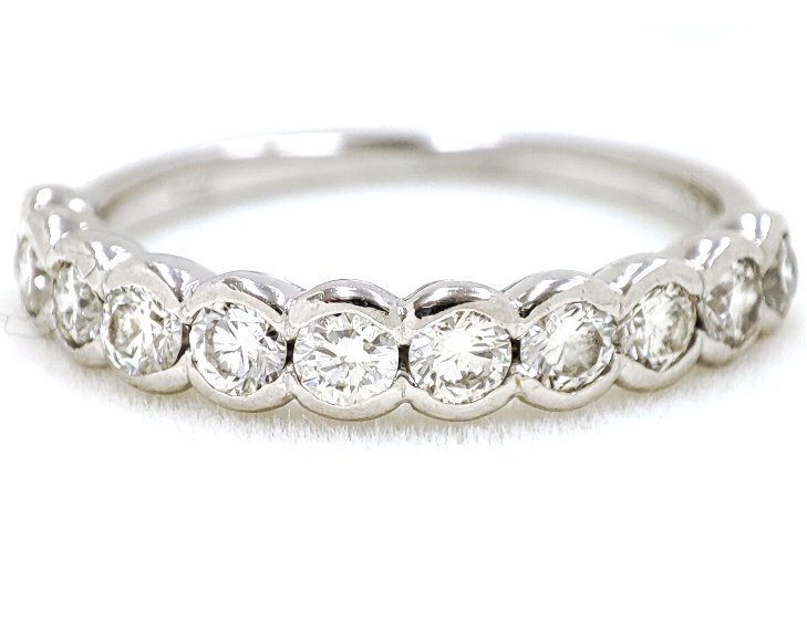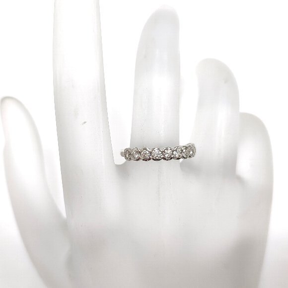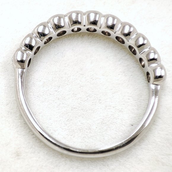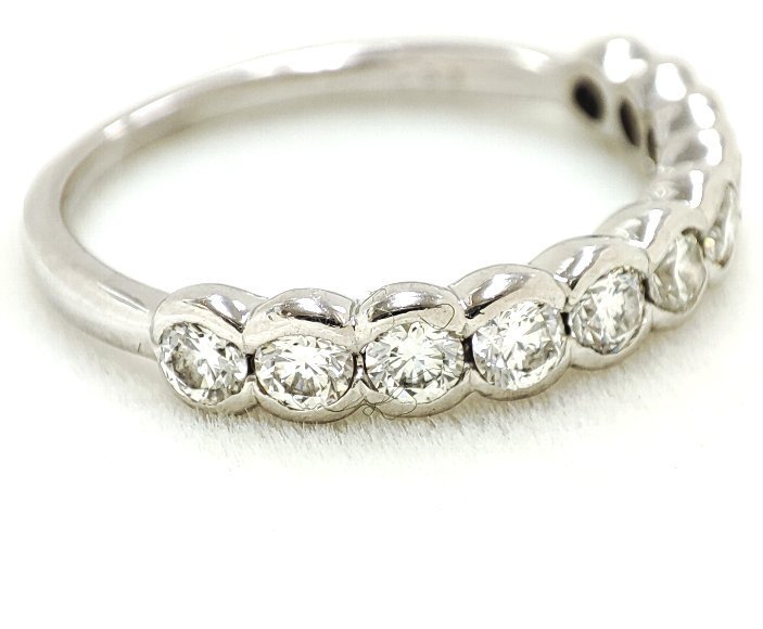 合計 11ピース 0.50カラットの天然ダイヤモンドをハーフエタニティに石留めデザインしたリングです。で花弁を模り デザインしたリングです。ダイヤモンドのクラリティは主観になりますが、SIクラスになるかと思います。輝きは強く綺麗です。リングサイズは 9号です。 |