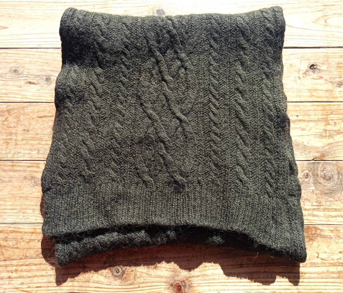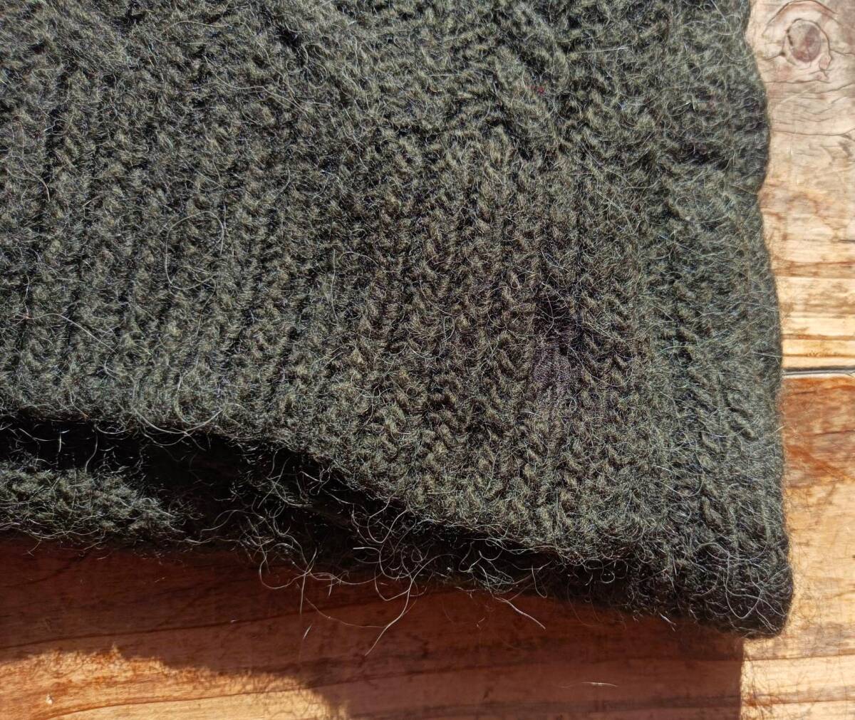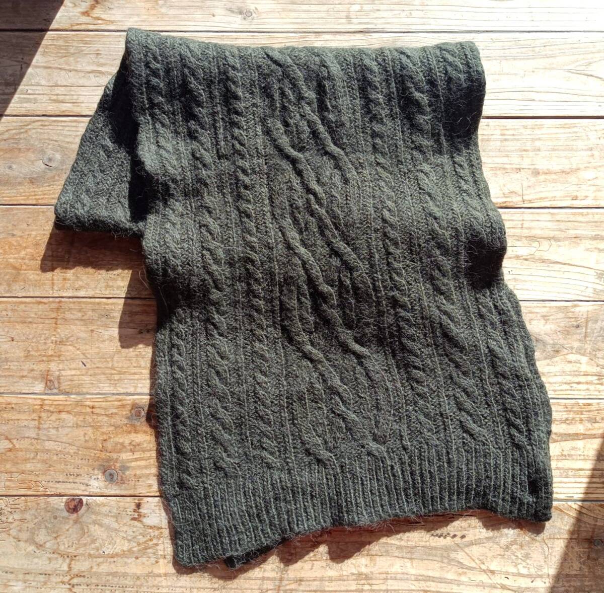 送料無料♪ラルフローレン POLO RALPH LAUREN モヘア混ウールニットセーター ケーブル編み モスグリーン ポニー刺繍 44×174㎝ 美品