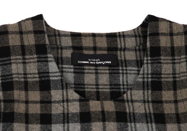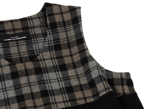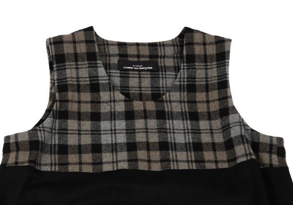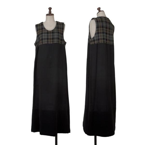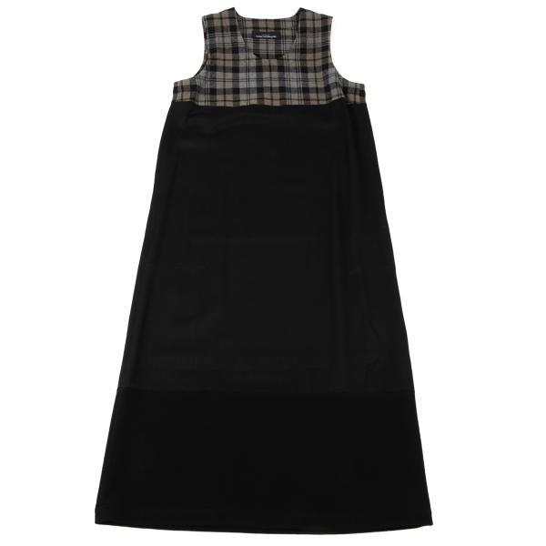トリココムデギャルソンtricot COMME des GARCONS 異素材チェック切替ノースリーブワンピース 黒グレーマルチM位 |