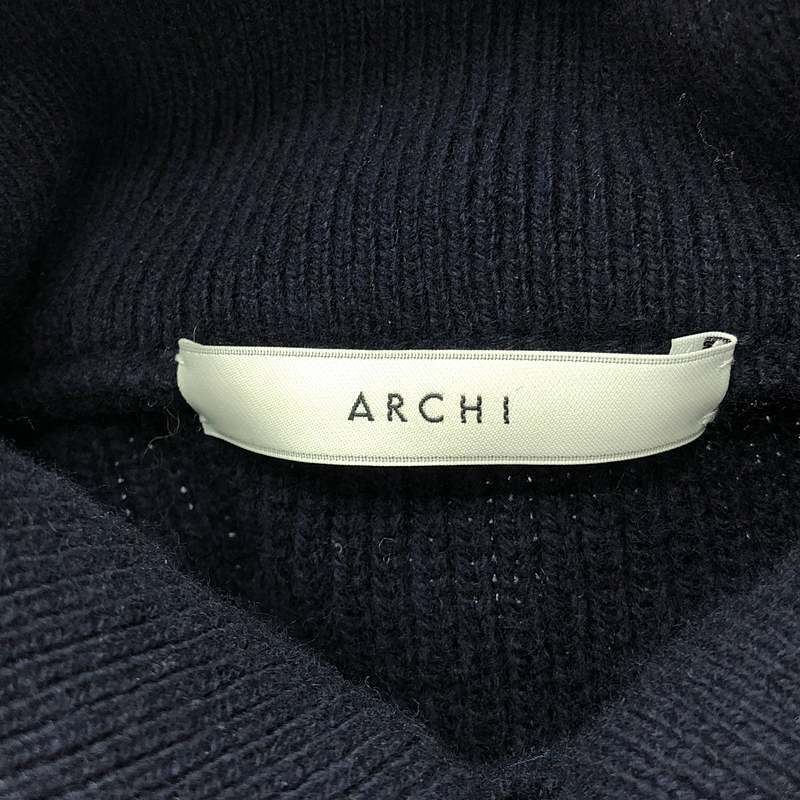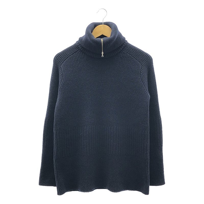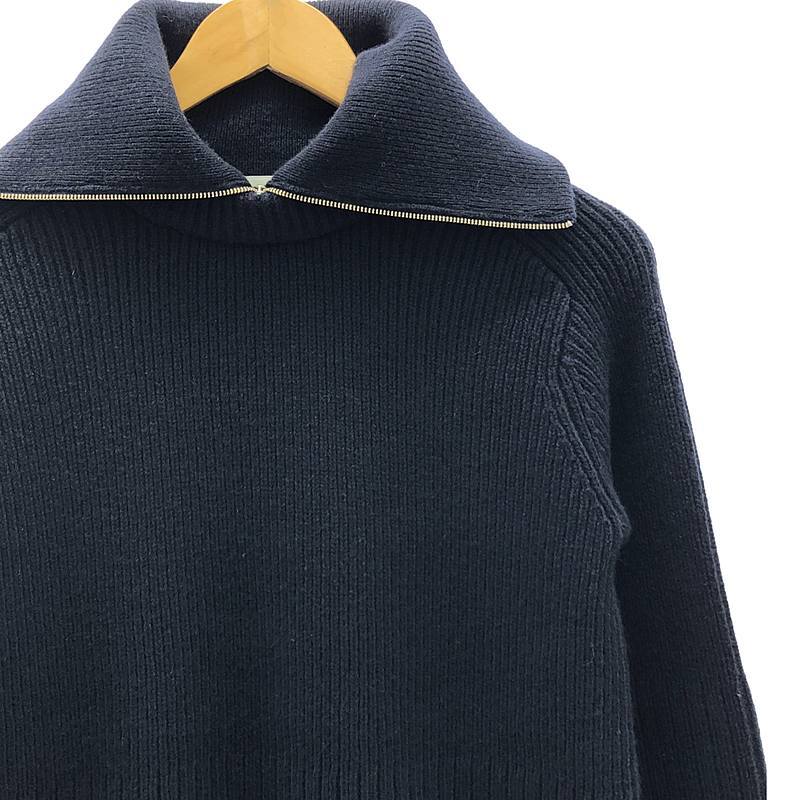 ARCHI / アーキ | RIB KNIT ZIP PULLOVER / レイヤードネック リブ ハーフジップ ニット プルオーバー | S | ダークネイビー | レディース
