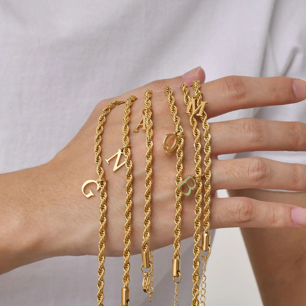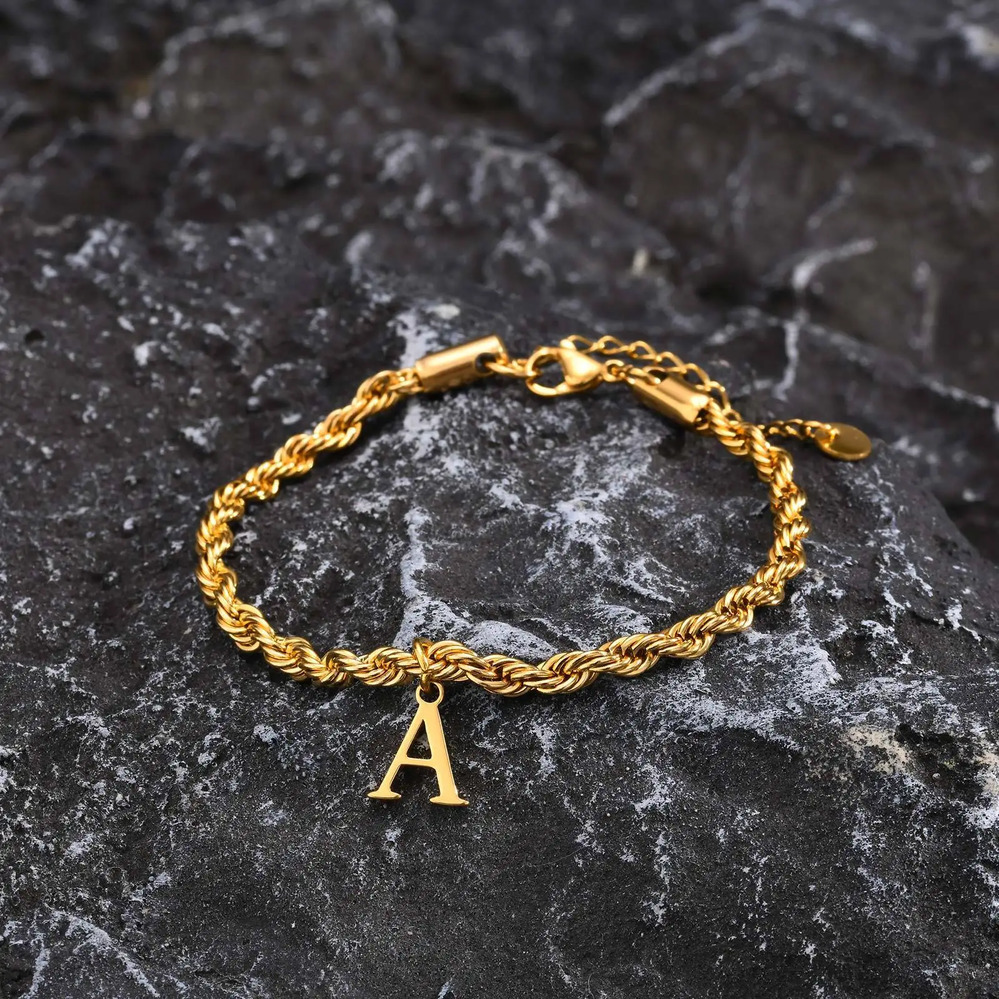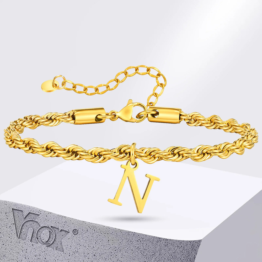 海外からの発送となりお届けに2週間程度頂きます。予めご了承くださいませ。商品名A-Z レター ブレスレット メンズ ゴールド プレート ステンレス スチール ツイスト ロープ チェーン クラシック ネーム ギフト 彼スペックファインジュエリーズFineJewelrys新作