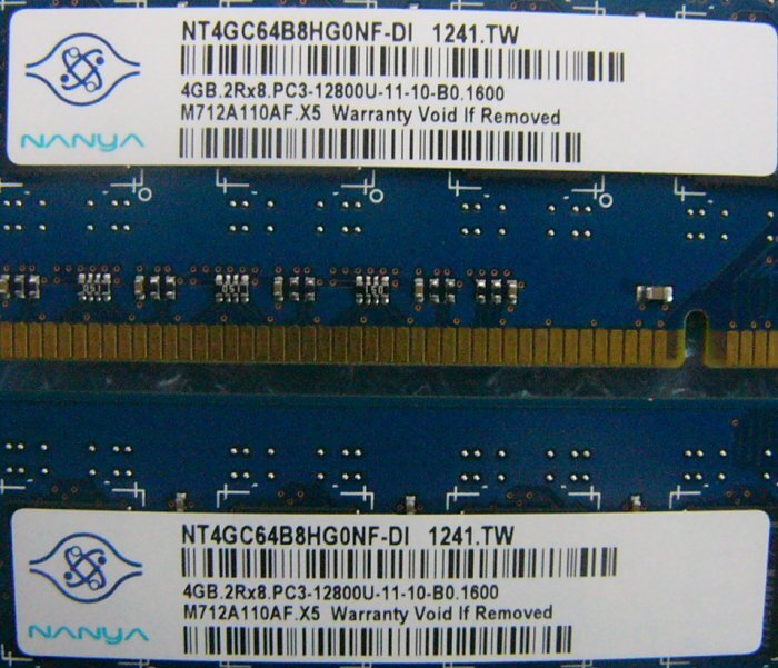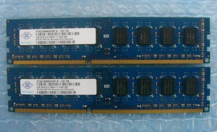 240pin DDR3 1600 PC3-12800U 4GB Nanya 2枚 合計8GB です