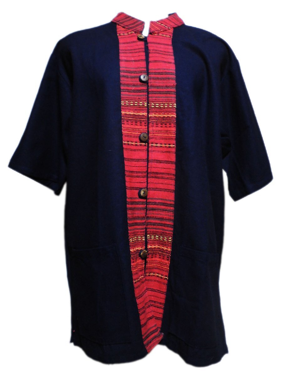 ■☆訳あり アジアン衣料 男女兼用 コットン前開き刺繍ロングブラウス (CS-40)
