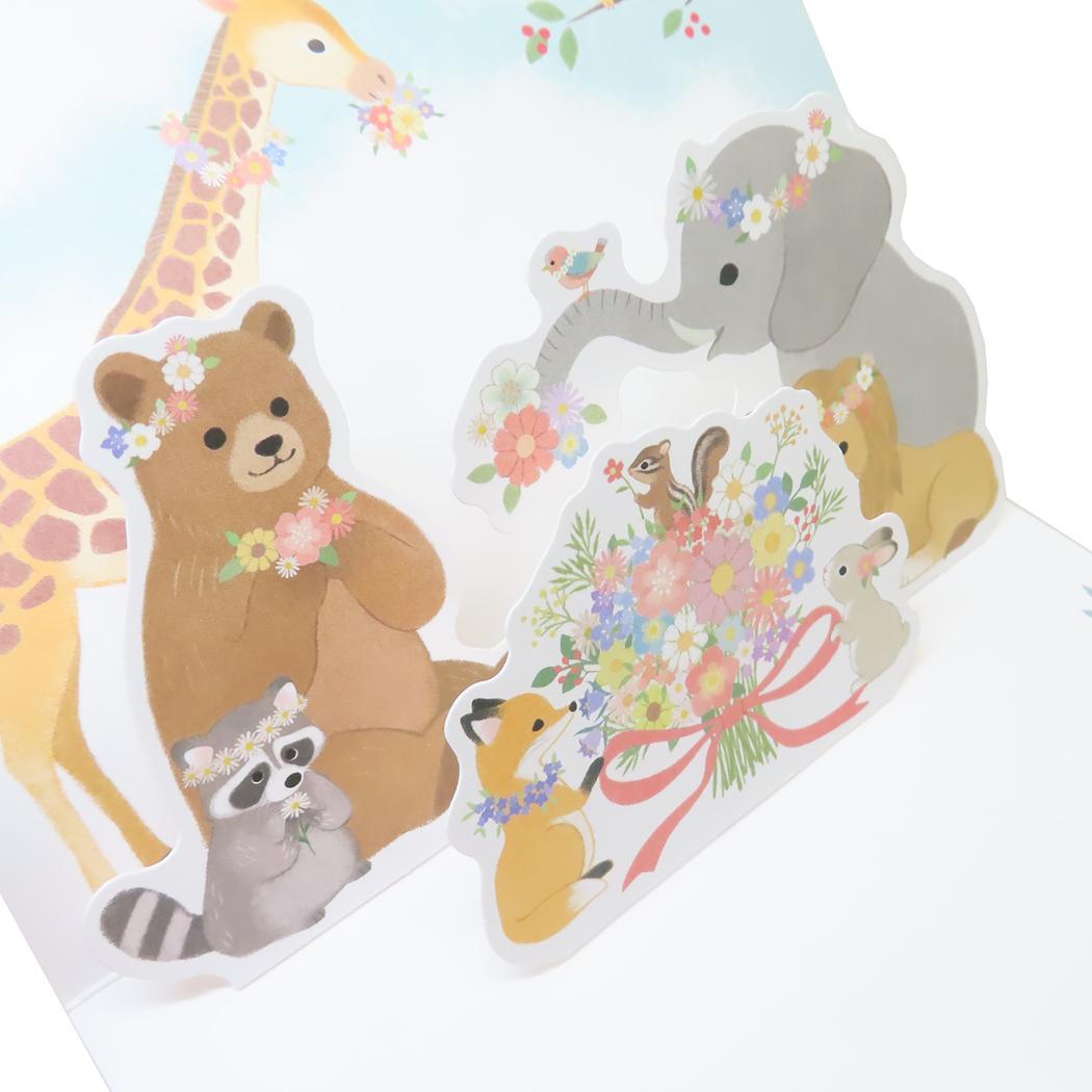 贈ってももらっても楽しいメッセージカード 贈ってももらっても楽しいグリーティングカードこちらは開いたとたんに笑顔が広がる楽しい[POP UPカード]かわいい動物たちが一緒にメッセージを伝えてくれます。専用封筒付きで、カードにメッセージが書き込めます。かわいいカードいろいろあるのでお気に入りを揃えてください。カードサイズ:約150x105mm/封筒サイズ:約165x115mm(定形内)