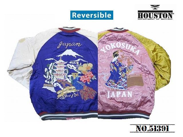 【送料無料 31%OFF】HOUSTON ヒューストン リバーシブル スカジャン  SOUVENIR JACKET 「JAPAN柄」 NO51391 NAVY_Lサイズ
