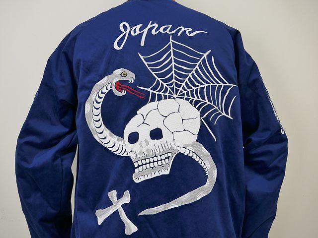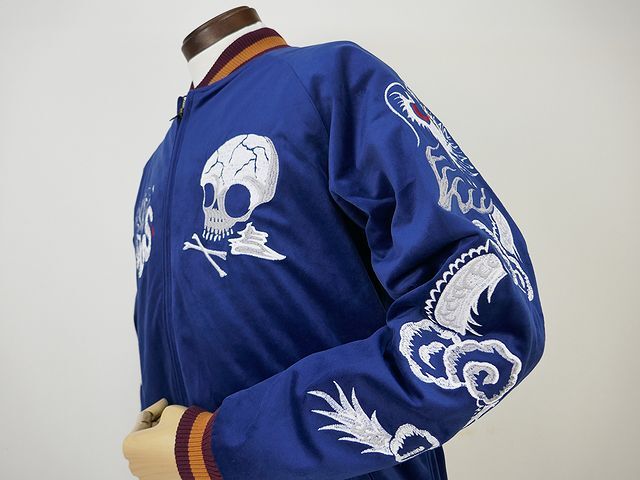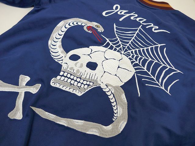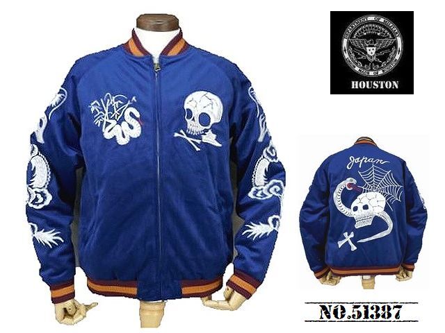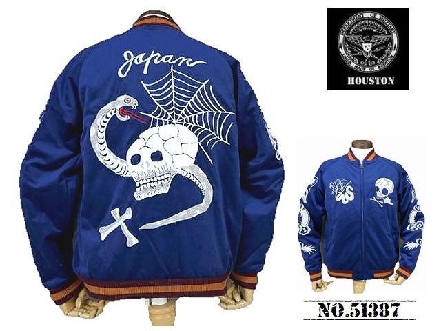 【送料無料 25%OFF】HOUSTON ヒューストン 別珍スカジャン SOUVENIR JACKET 「SKULL柄」 NO51387 NAVY_Mサイズ