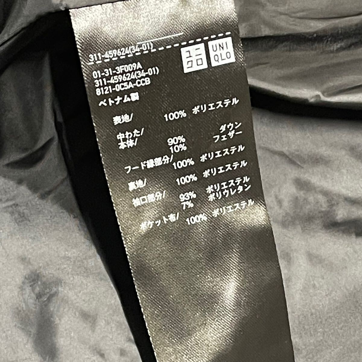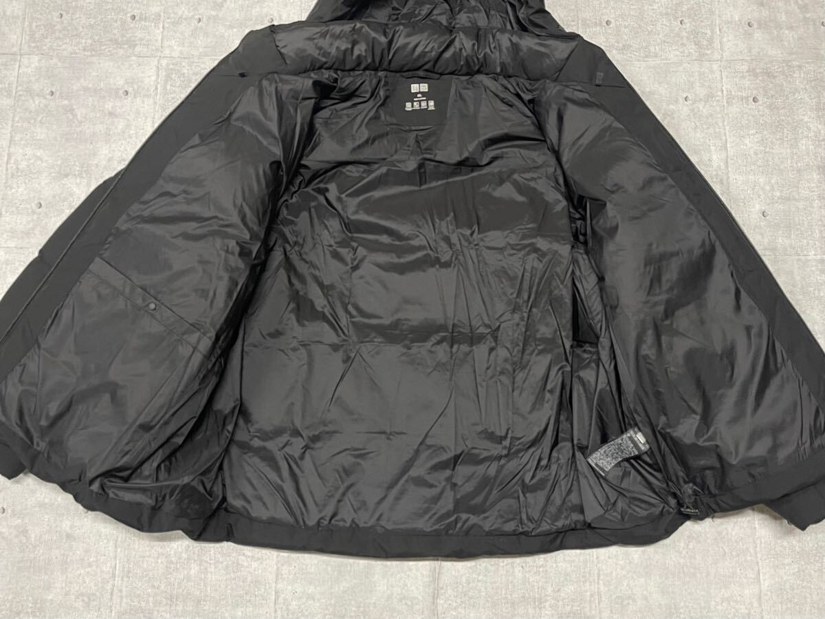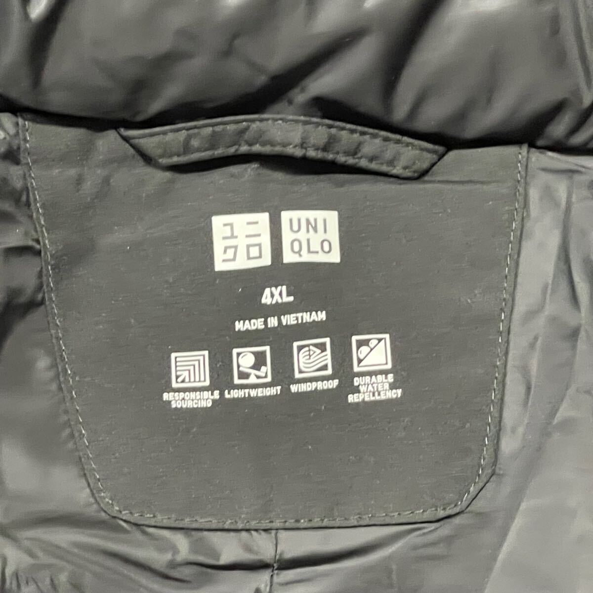 極美品 UNIQLO フーディーダウンジャケット 止水ジッパー ユニクロ  大きいサイズ4XL 撥水 防寒 保温 軽量 アウター ブラック 早4272