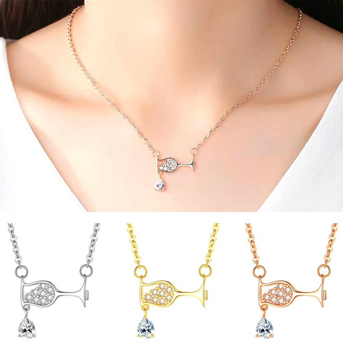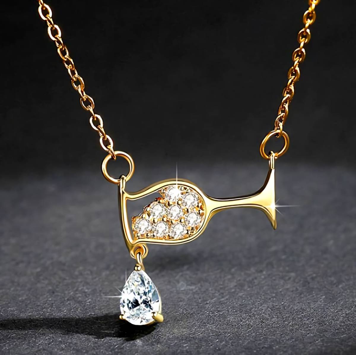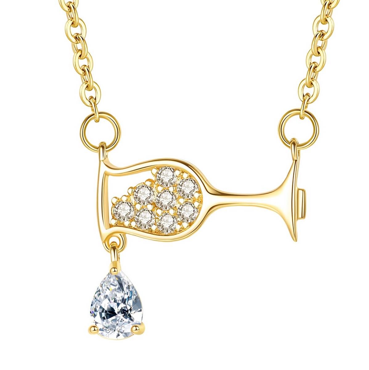 新品★送料無料★七色ダイヤモンド ワインの雫グラス 金彩K18GFゴールドネックレス 誕生日プレゼント旅行連休花見初春ギフト国内発送