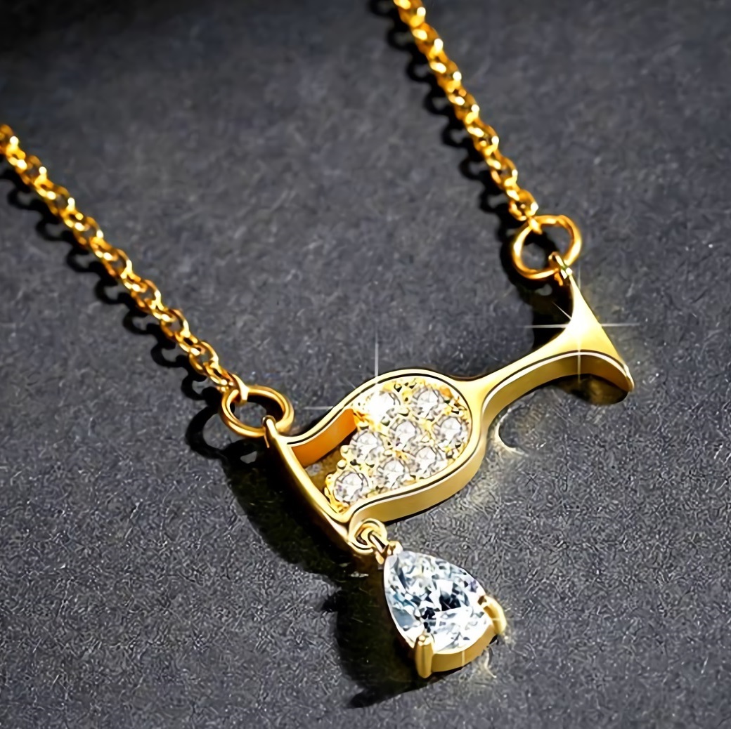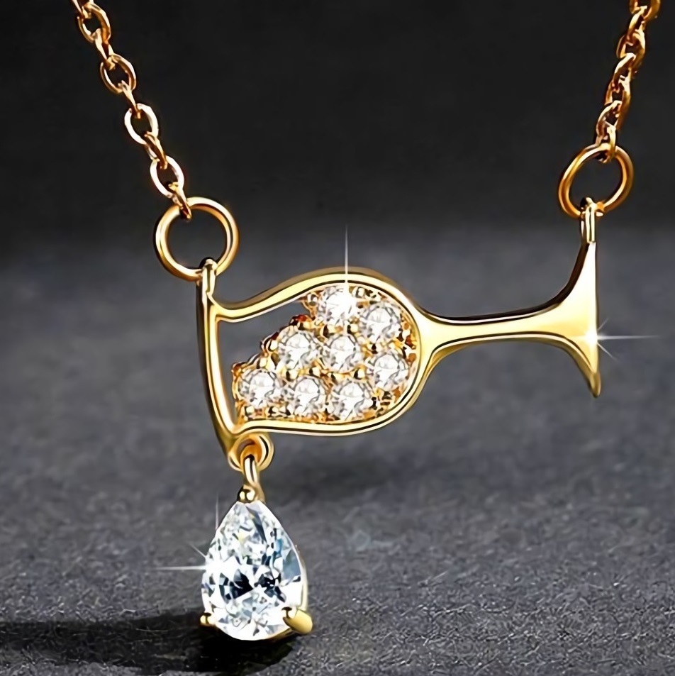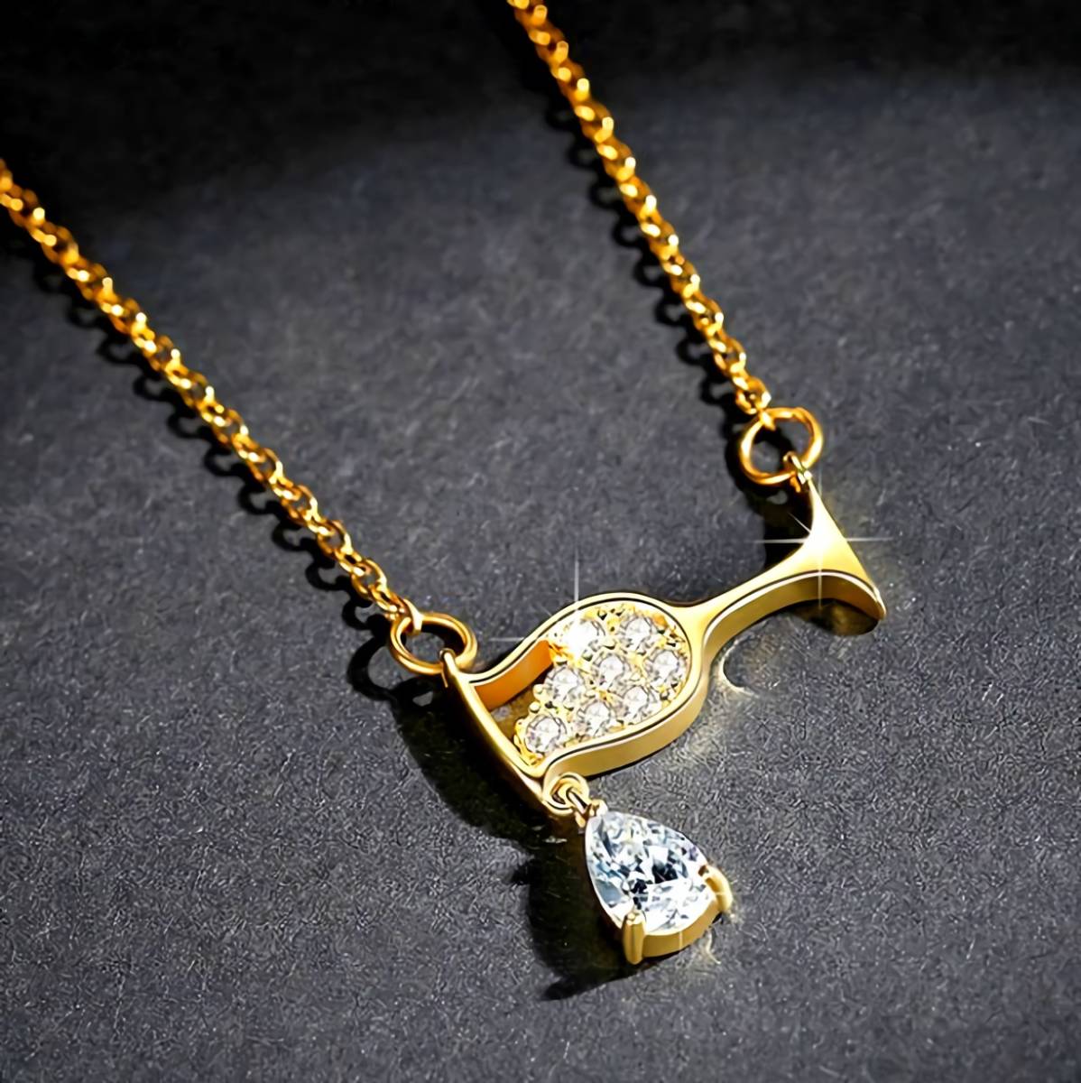 新品★送料無料★七色ダイヤモンド ワインの雫グラス 金彩K18GFゴールドネックレス 誕生日プレゼント旅行連休花見初春ギフト国内発送
