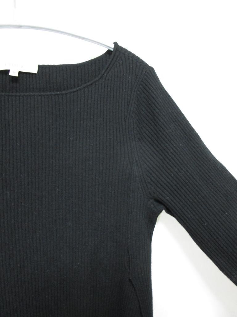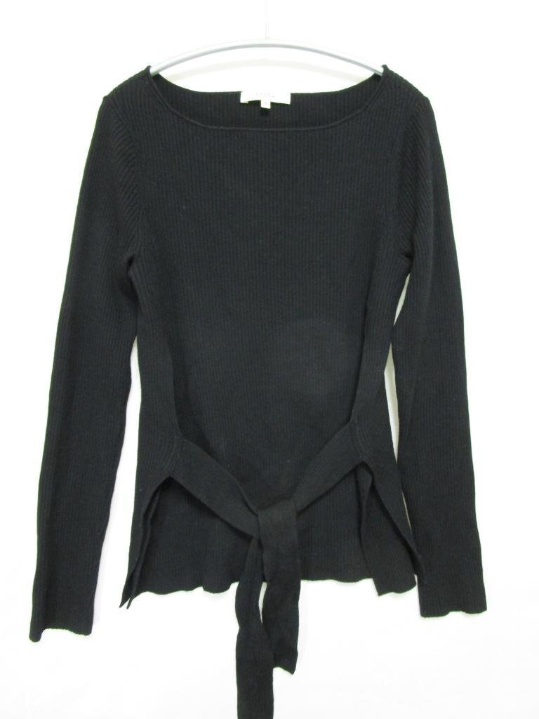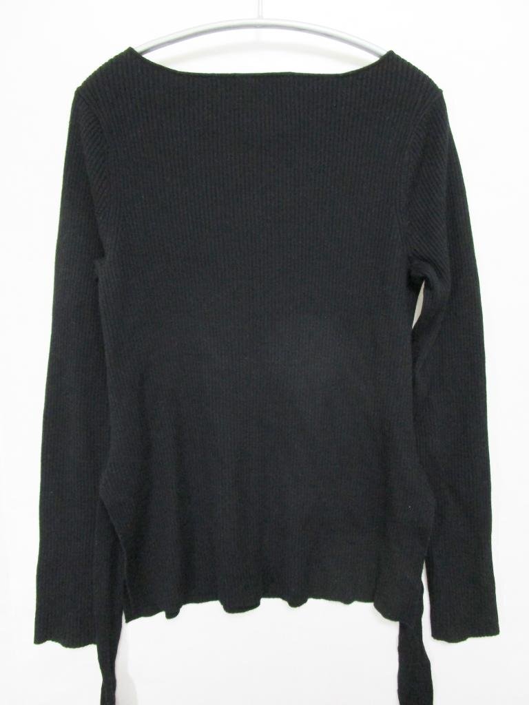 【送料込】 EPOCA エポカ ニット ブラック 黒 無地 ウール混 ストレッチ リブニット フロントリボンデザイン size40 M エレガンス/965835