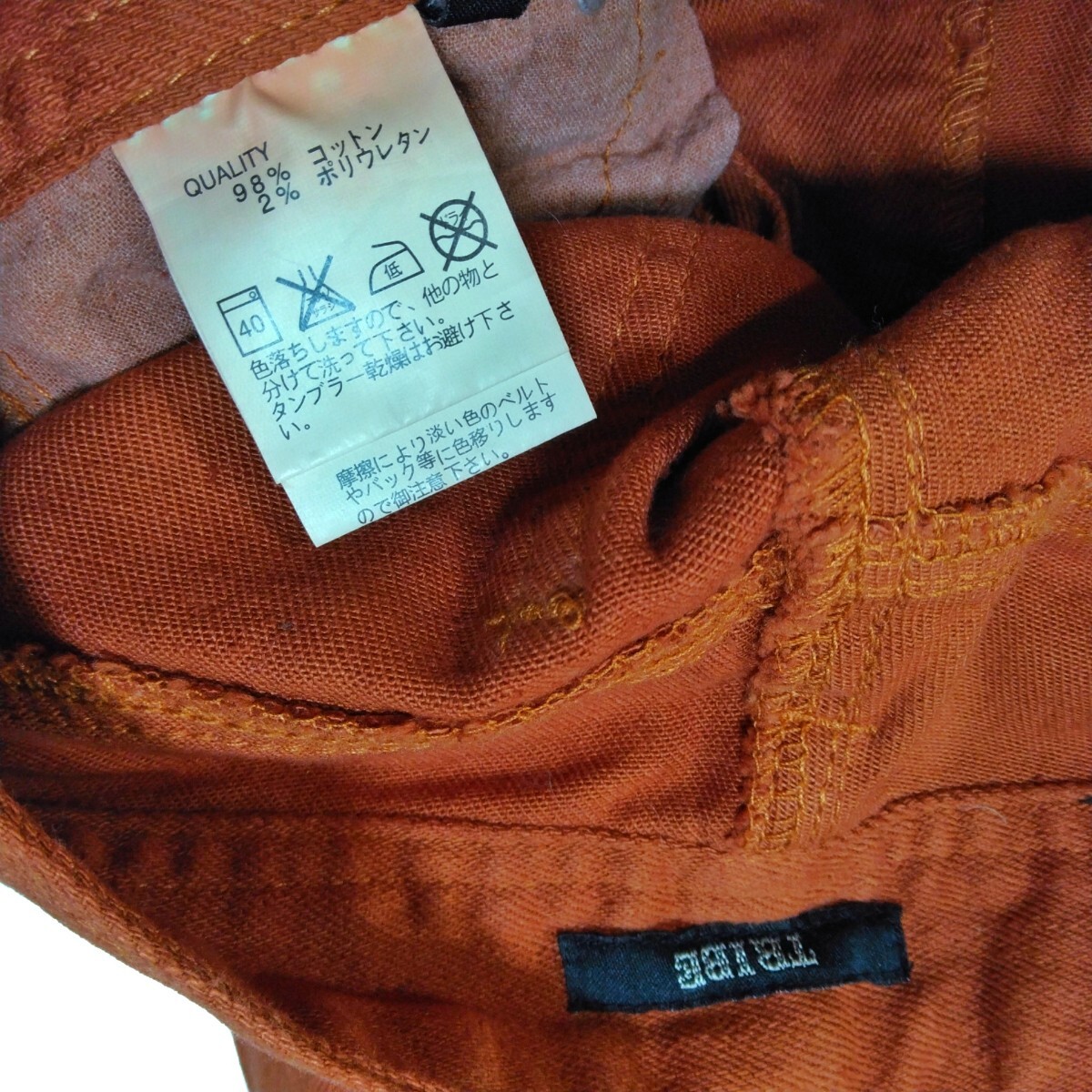 【TRIBE】 トライブ ストレッチパンツ クラッシュ スキニーパンツ デニム ブラウン オレンジ ベイクドカラー ダメージ加工 無地 ギャル