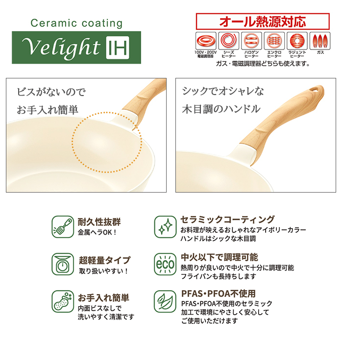 PFAS・PFOA不使用のセラミック加工で環境にやさしく安心してご使用いただけます。