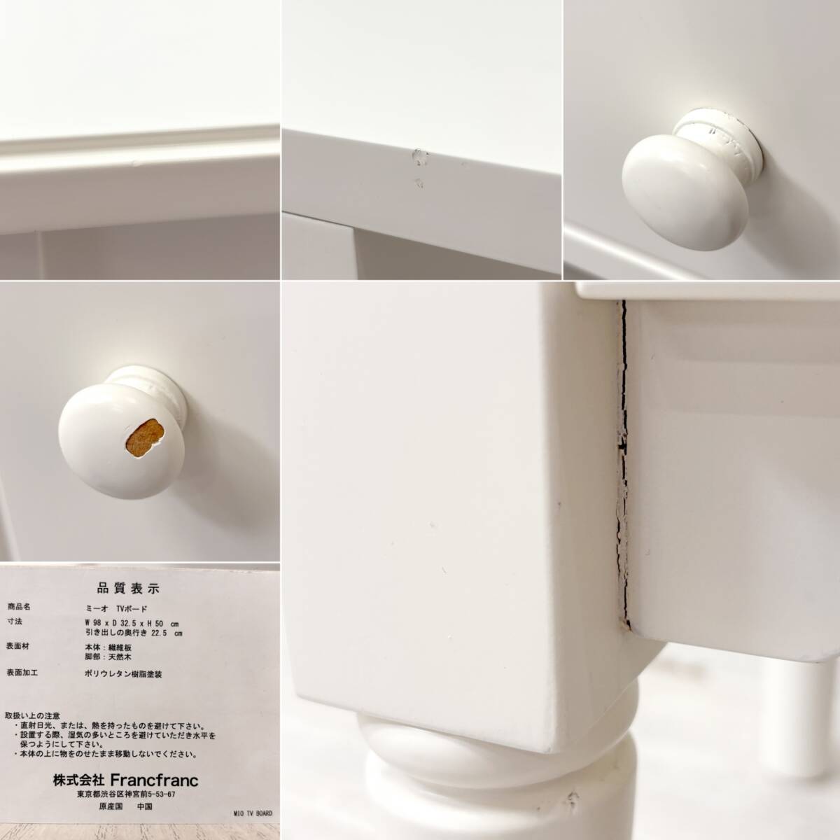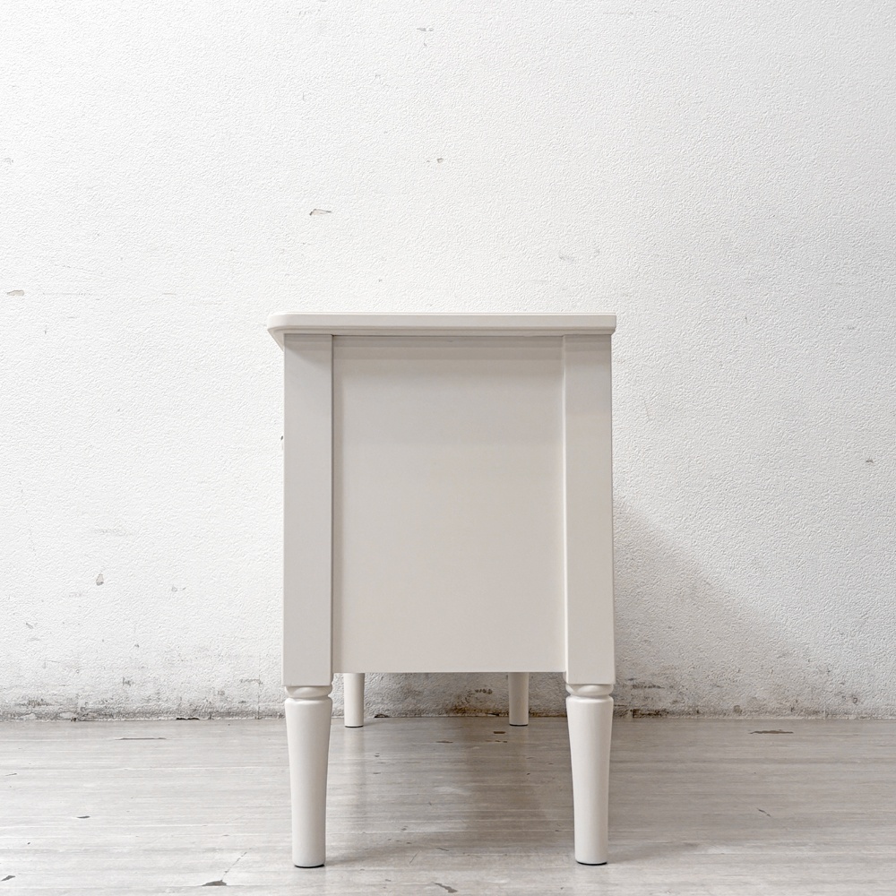 コメント | 「 何気ない毎日を楽しい生活に。」というブランドコンセプトのもと全国80店舗以上を展開している、人気の国内インテリアブランド Francfranc / フランフラン 。 そんな同社の柔らかなクラシカルスタイルが可愛らしい”ミーオ”AVボードです。 ヨーロッパの伝統様式を随所に取り入れつつ、オフホワイトを基調とした優しい雰囲気に仕上げられており、フェミニンな印象に。 観葉植物やお花等が映えるカラーとなっておりますので、テレビ横に飾る事で自分のお気に入りの空間を作る事もできそうですね。 脚部は取り外しが可能で、フェルトを代わりに付ければローボードとしてスッキリとレイアウト出来ます。 コンパクトなサイズ感は一人暮らしのお部屋にも圧迫感なく設置する事ができるので、気軽にインテリアに取り入れる事ができると思います。 ※当ショップは、主にリサイクル品を取り扱っております。基本的にUSED品である事をご理解頂き、ご入札をご検討下さいませ。 |