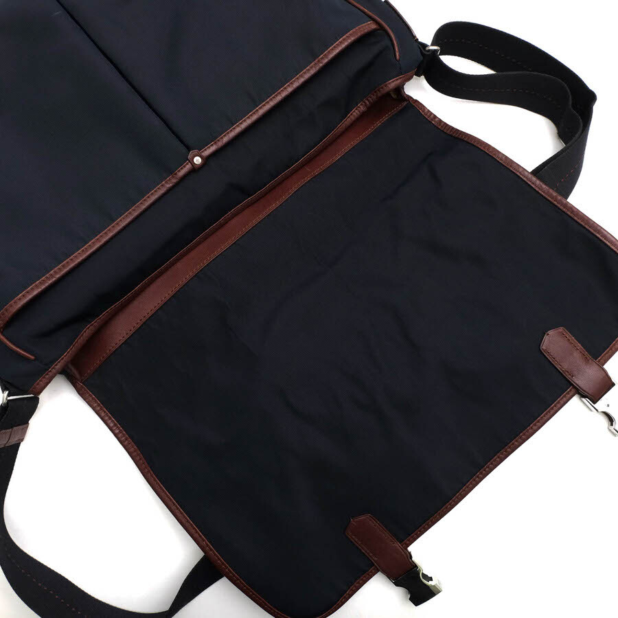 ◆ブランド名 Dunhill ◆サイズ詳細 横幅 約39cm、縦幅 約29cm、マチ 約11cm、ショルダー長さ最大 約135cm ◆仕様 ポケット×4 ファスナーポケット×2 PC収納×1 ◆特徴 フラップ式 メッセンジャーバッグ ◆型番 L3WG65A Guardsman ガーズマン ◆素材 上質なナイロン×革レザー ◆素材詳細 高密度ナイロン × カーフ(牛革) ◆色 ネイビー 紺 ◆商品状態 中古品-良い ◆状態詳細 美品。内部底部分に僅かなシミ跡あり(画像8枚目参照) |