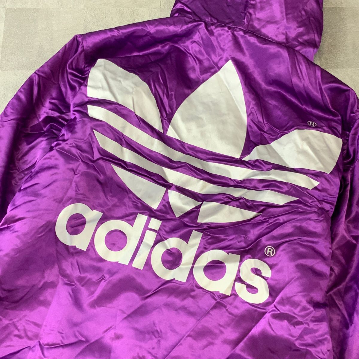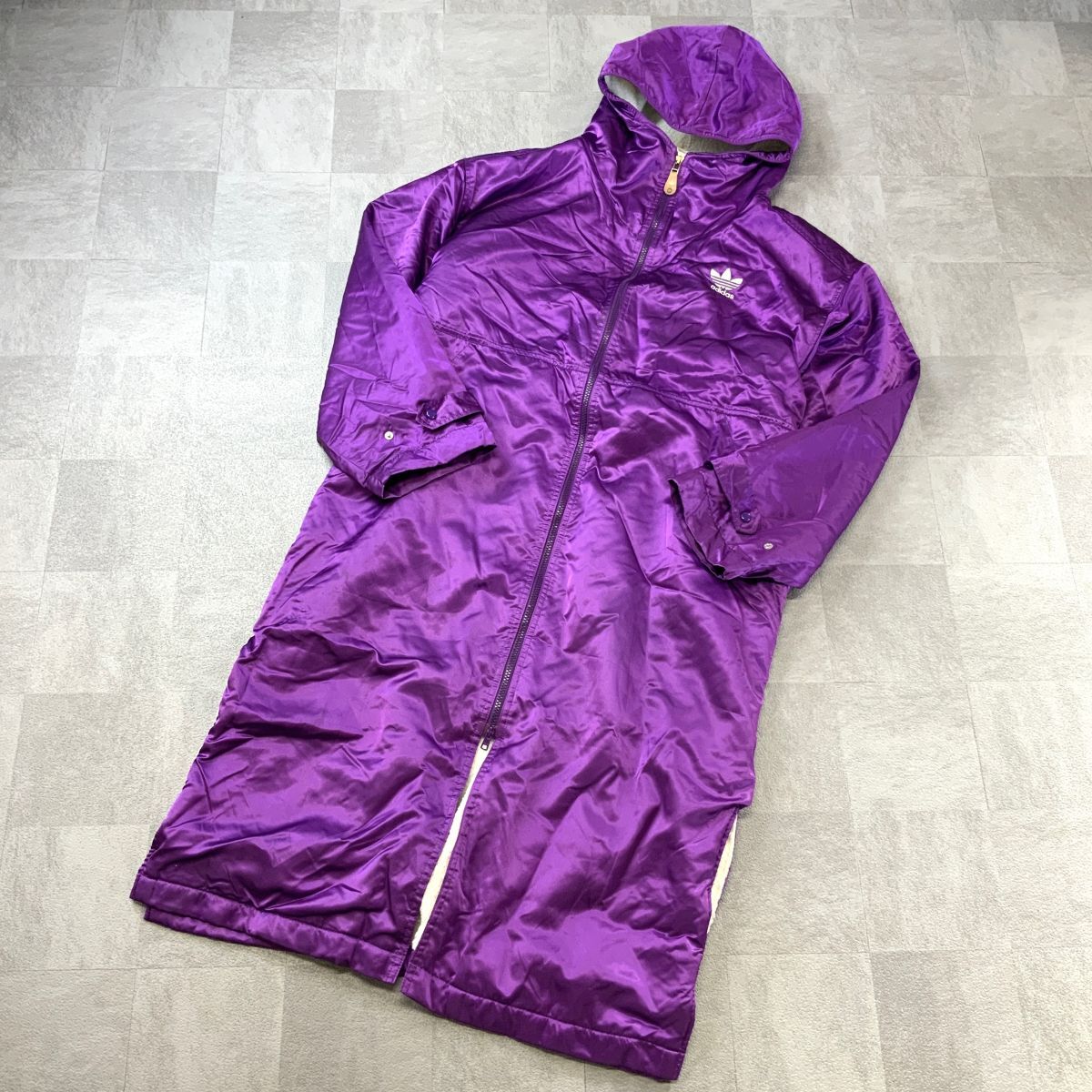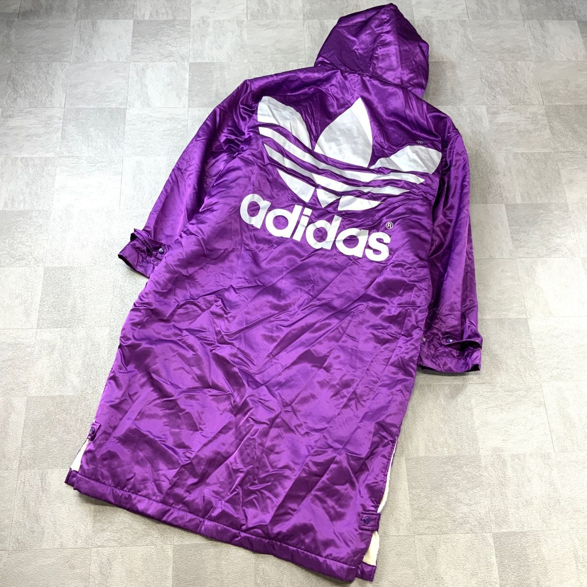 希少カラー 90‘s adidas アディダス デサント製 ビッグトレフォイルロゴ 中綿 ポリダウン ボア ロング ベンチコート メンズ L パープル