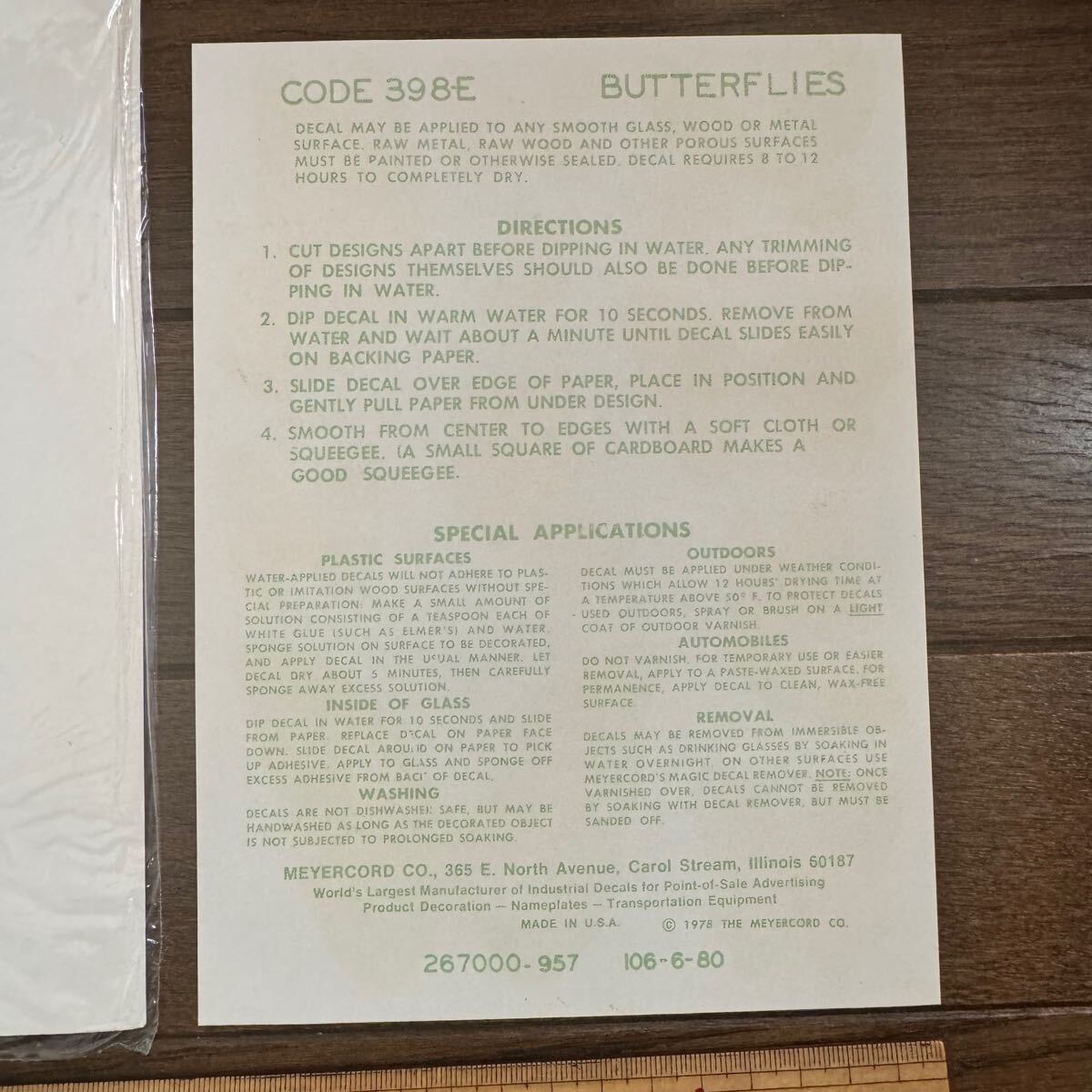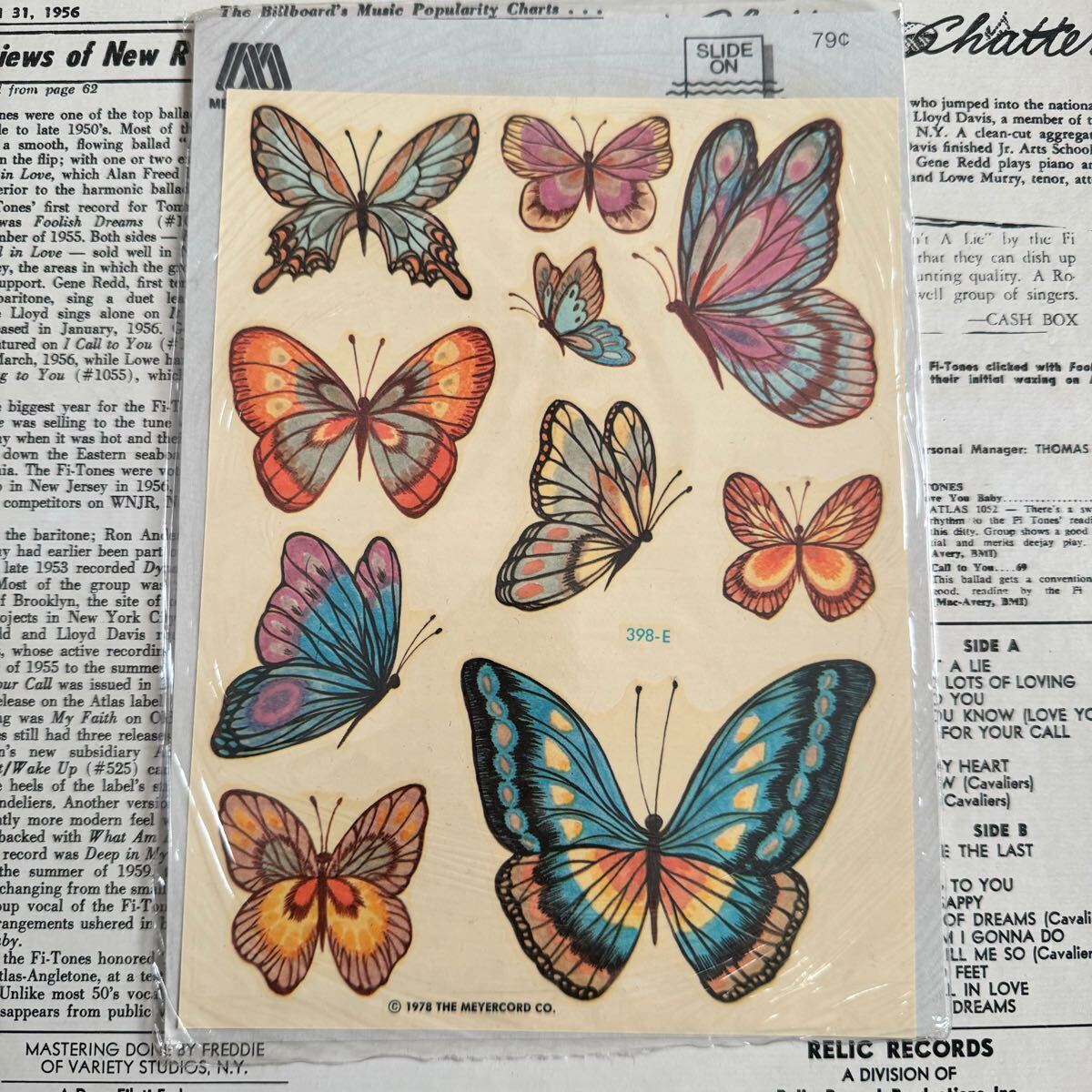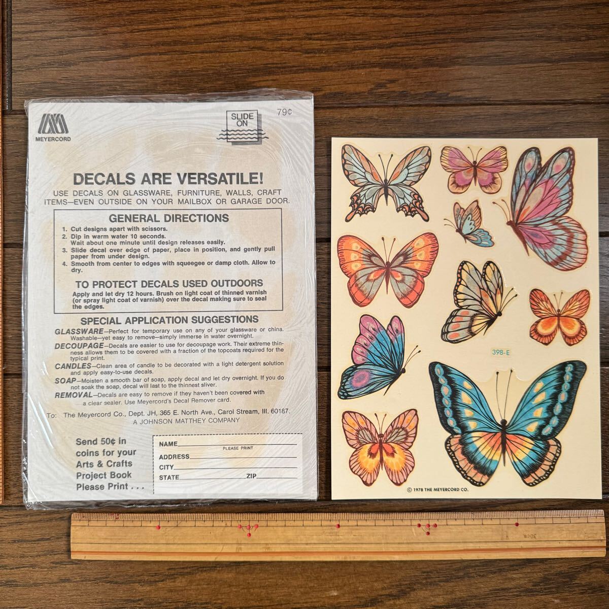 1978年のカラフルな蝶々モチーフのデカール 転写紙です