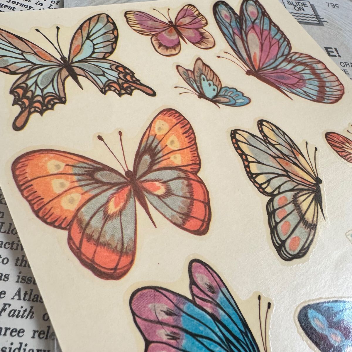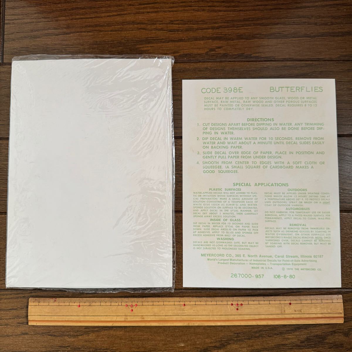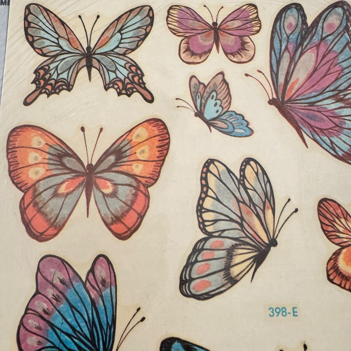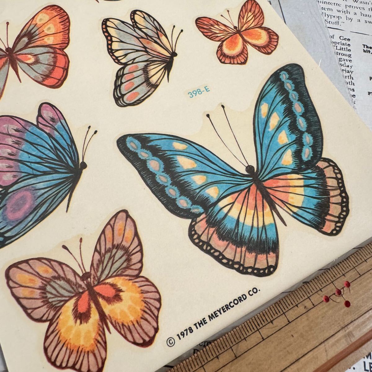1978年のカラフルな蝶々モチーフのデカール 転写紙です