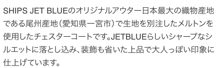 織物産地で有名な尾州(愛知県一宮市)で生地を別注したオリジナルメルトンチェスターコート