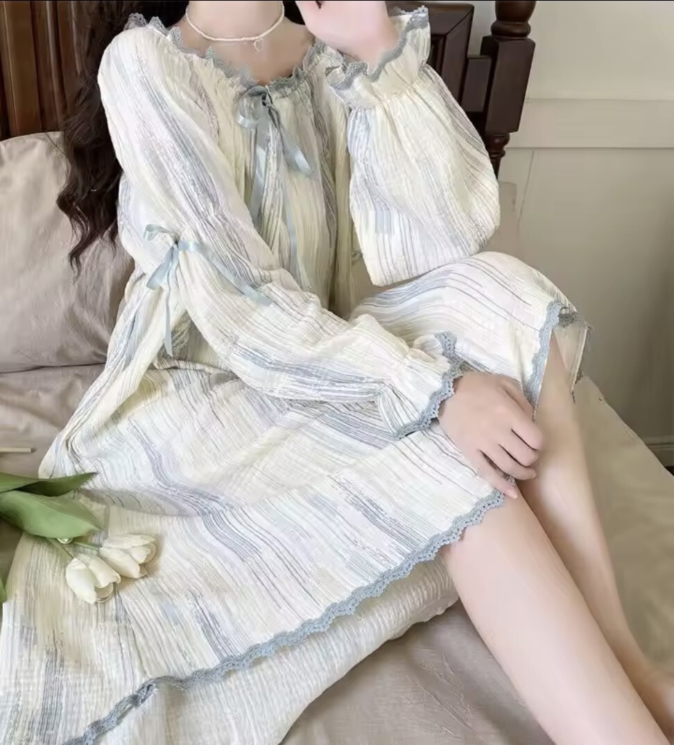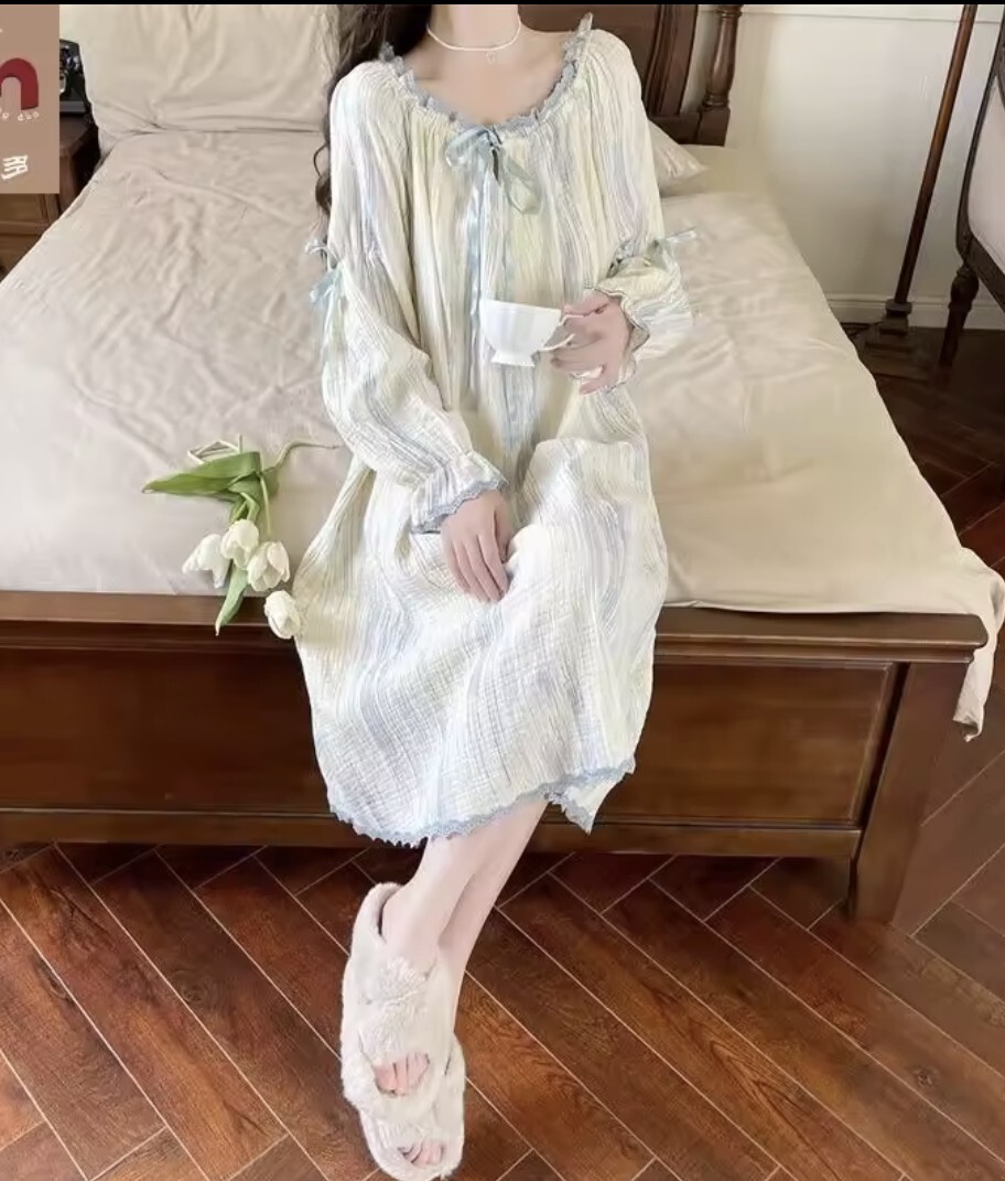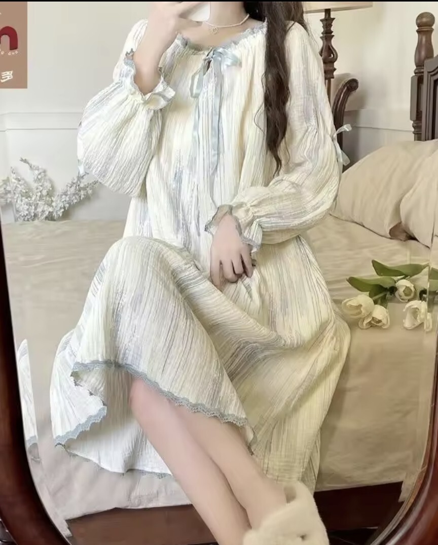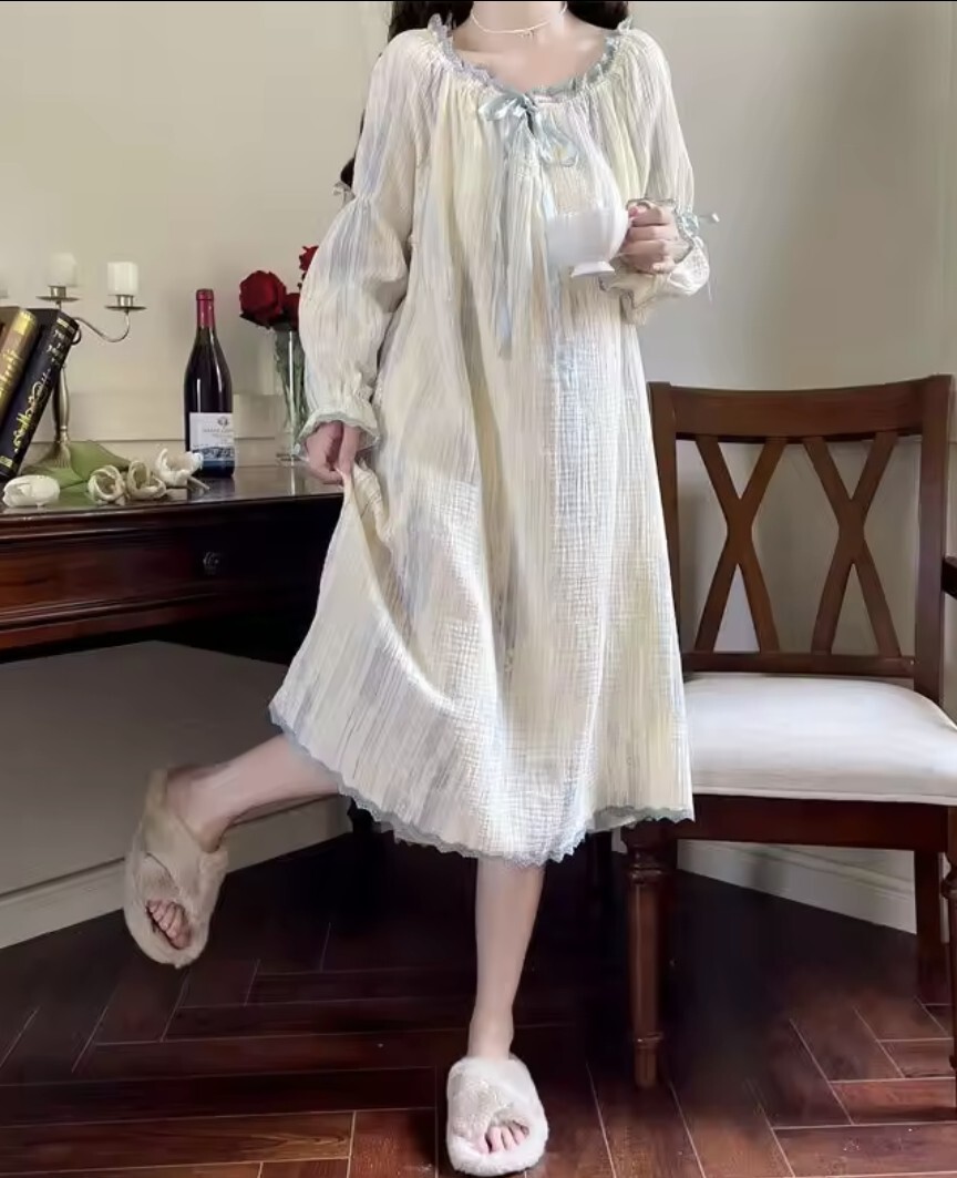 ■,愛らしい胸元リボンのエレガントなナイトガウン,大人の柔らかい肌触り