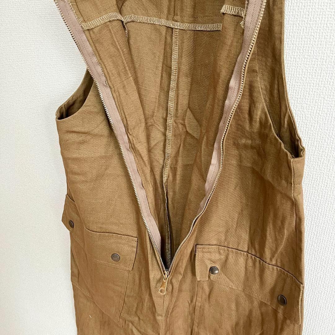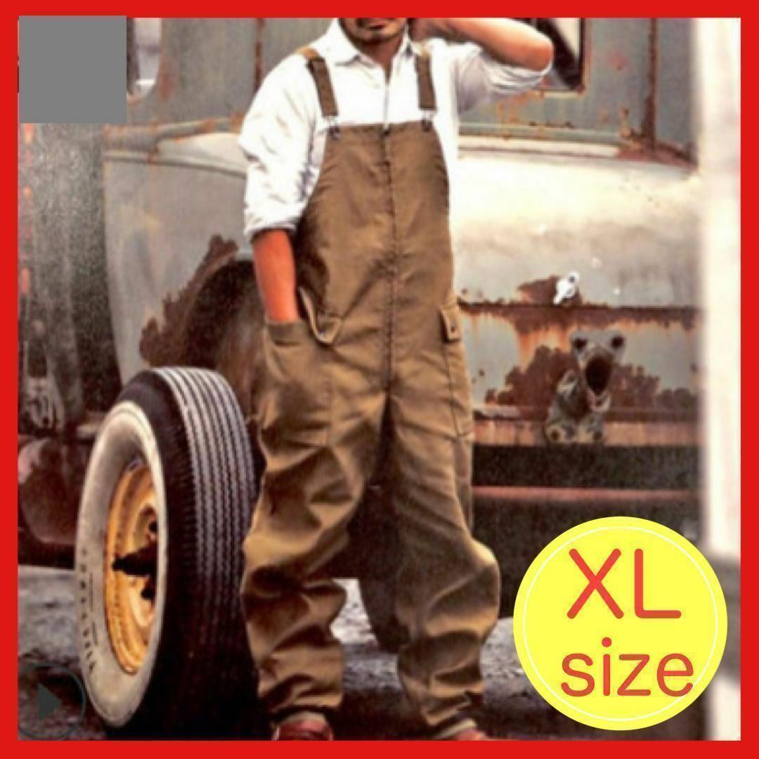 新品 XL オーバーオール ブラウン オールインワン 無地 茶 作業 無地