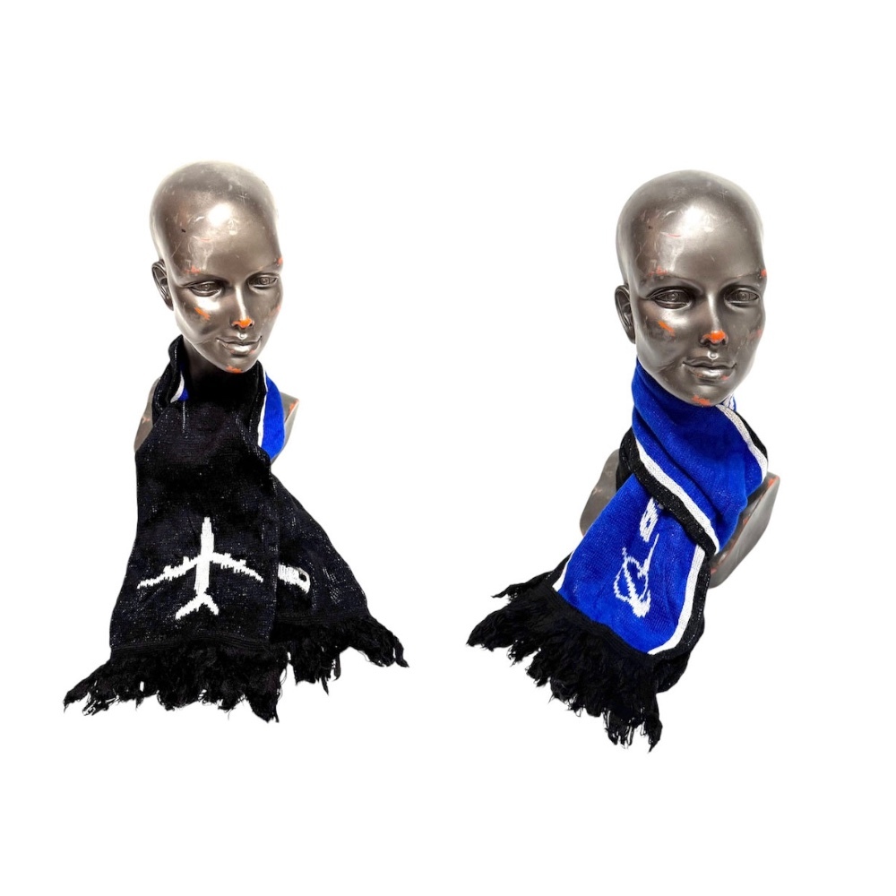 USEDの2010's BOEING 747-8 マフラー サッカーマフラーです。BOEING 747-8はBOEINGのB747シリーズの旅客機であり、B747-400の後継機、またB747シリーズの最終モデルである。飛行機マニアだけでなく、サッカーマフラー風デザインなのでフーリガンファッション的捉え方でも。裏表で全く違う表情になるので、コーディネートに合わせてみて下さい。