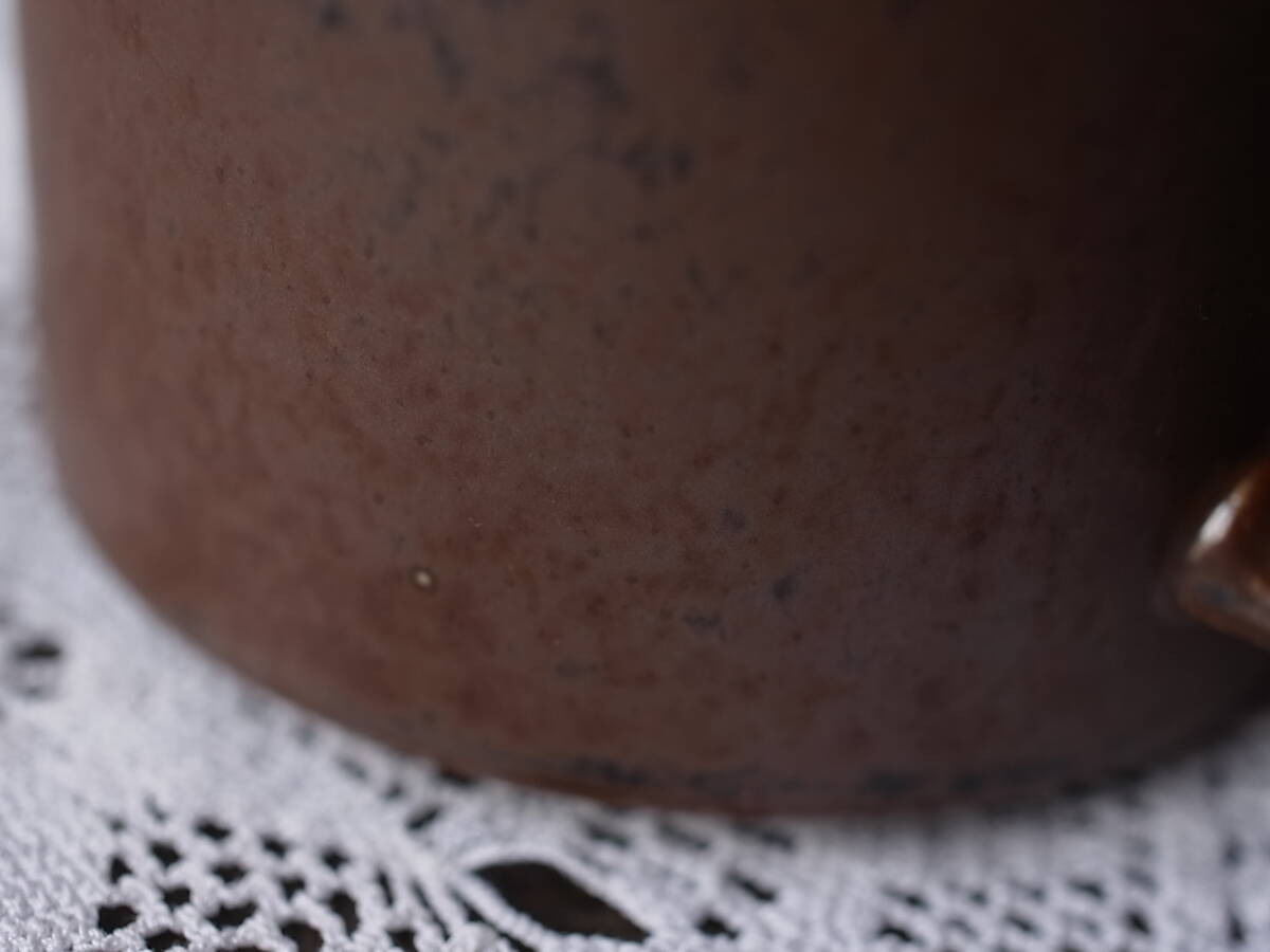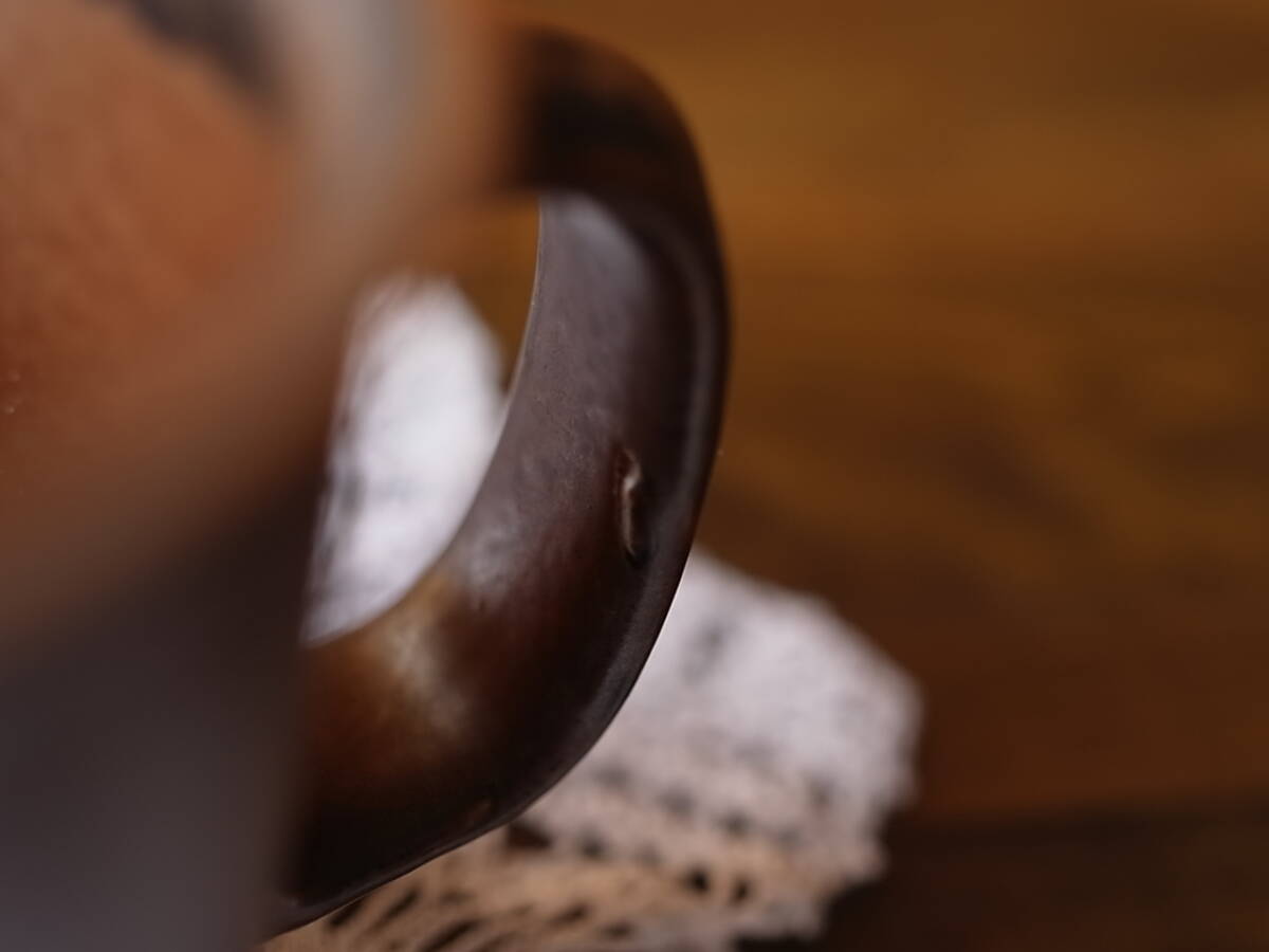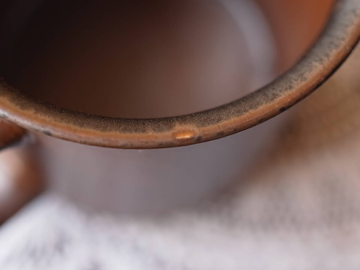 釉薬ムラ、小さな焼き染み、裏面支柱跡、わずかながたつきなどあります。