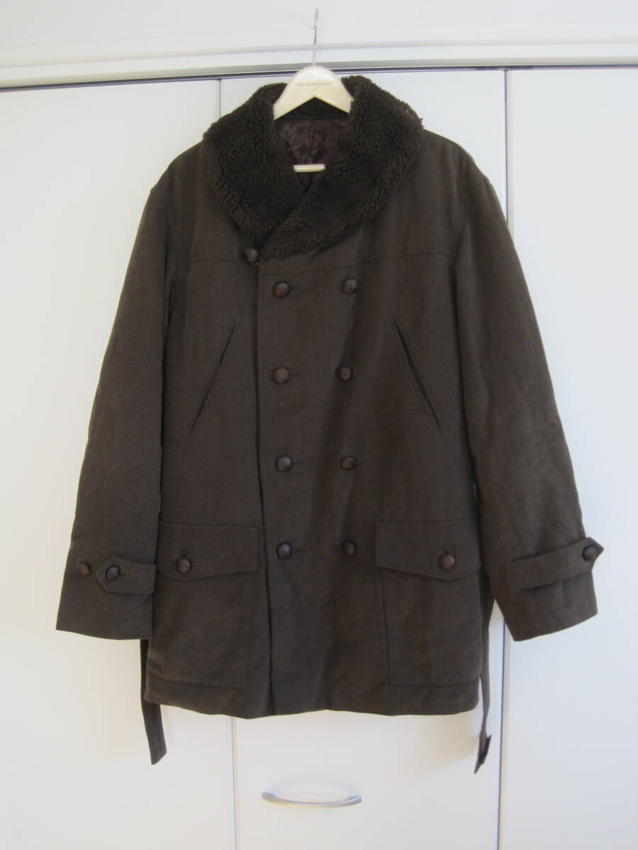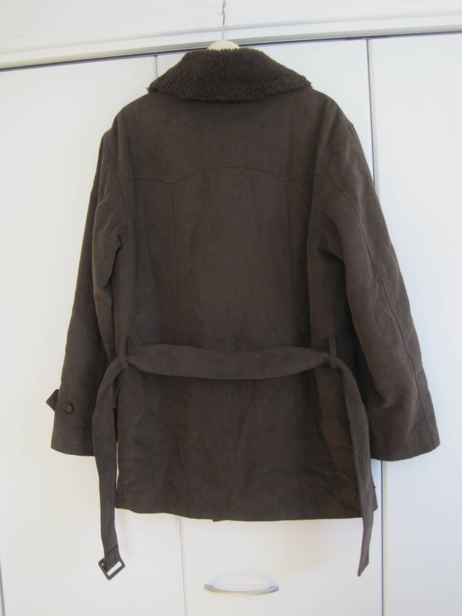 agnes b. HOMME アニエスべーオム ダブルブレストコート 襟ボア コート ベルト付きになります。多少の着用感がありますが、特に目立つ傷、汚れはありません。カラーはブラウン、サイズは44、綿100%、裏地レーヨン100%、中わたポリエステル100%、スロバキア製です。肩幅49cm、袖丈60cm、身幅51cm、着丈79cmです。素人の採寸ですので若干の誤差、商品状態はご了承ください。 落札後は、ノークレーム、ノーリターン、ノーキャンセルでお願いします。発送方法はゆうパック着払いです。ほかにも色々出品していますので良かったらご覧ください。