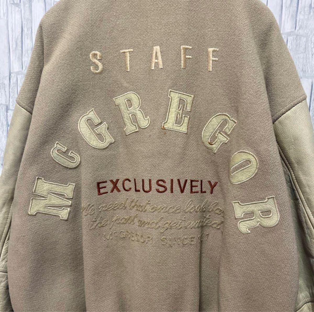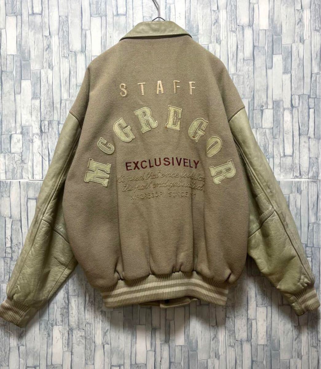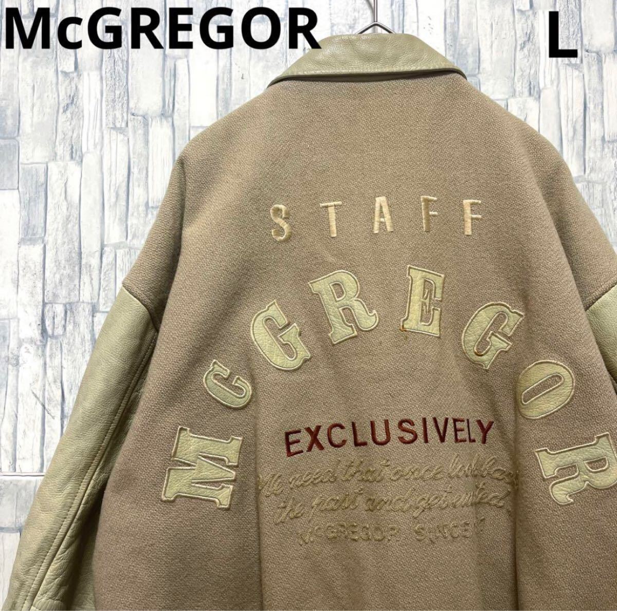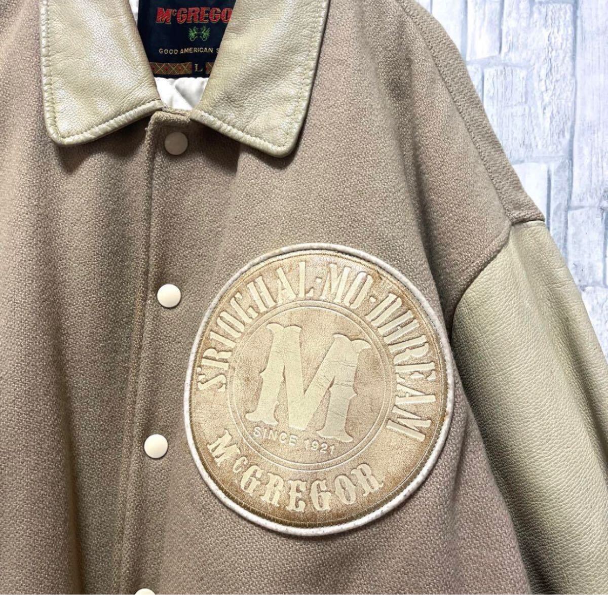 McGREGOR マックレガー マクレガー スタジャン ブルゾン スナップボタン 袖レザー 刺繍ロゴ ワッペン デカロゴ サイズL リブボーダー 中綿 フェード 送料無料の出品です。