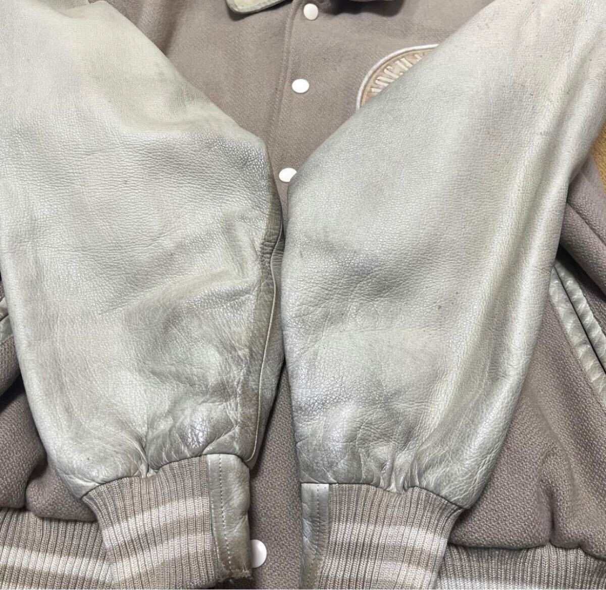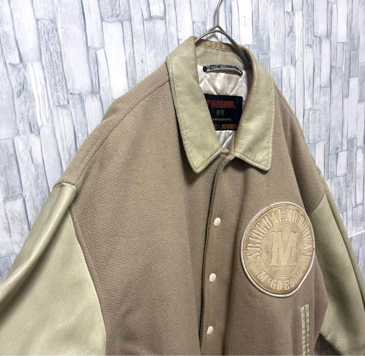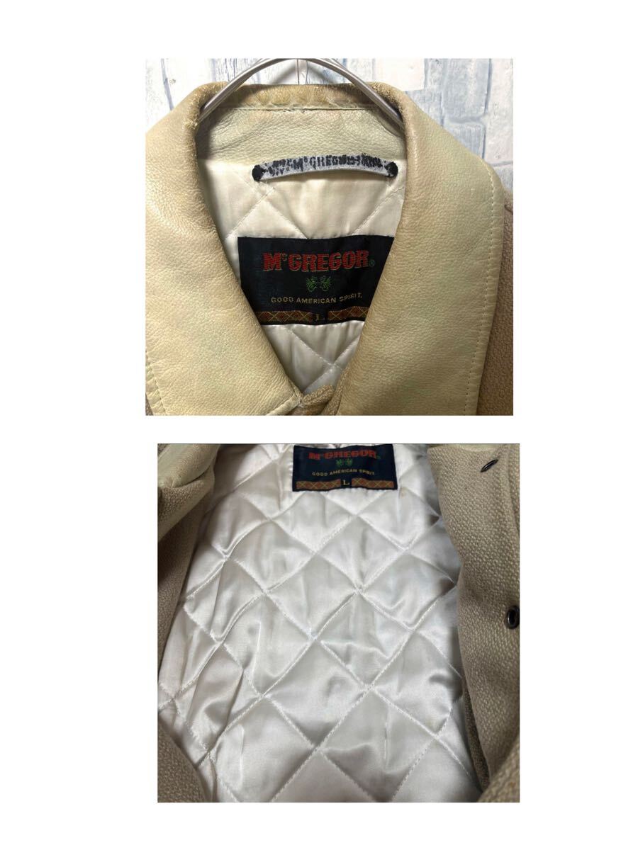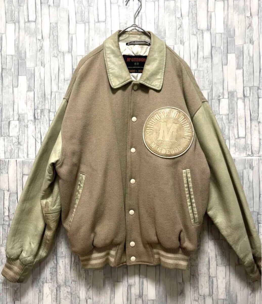 McGREGOR マックレガー マクレガー スタジャン ブルゾン スナップボタン 袖レザー 刺繍ロゴ ワッペン デカロゴ サイズL リブボーダー 中綿 フェード 送料無料の出品です。