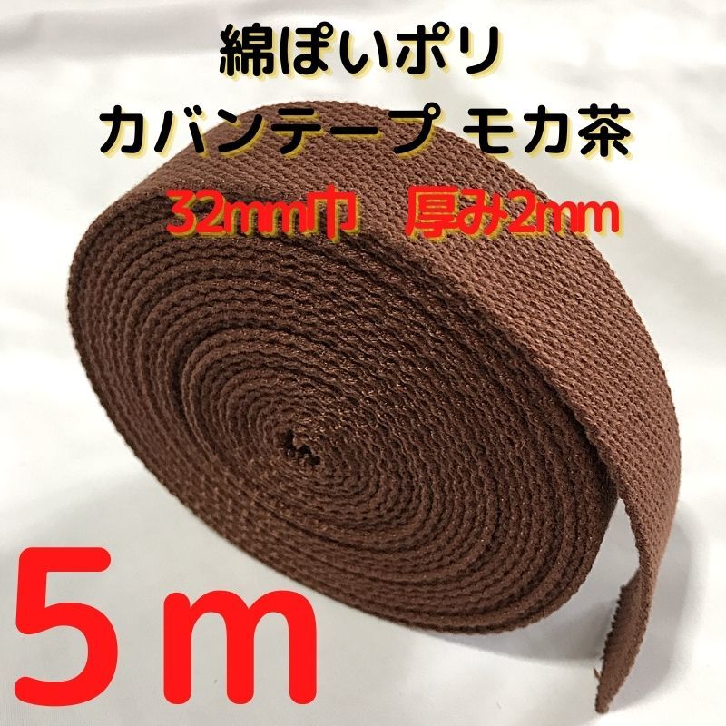 カバンテープ32mm モカ茶5M綿ぽいポリアクリルテープ風平織【KT32M5】