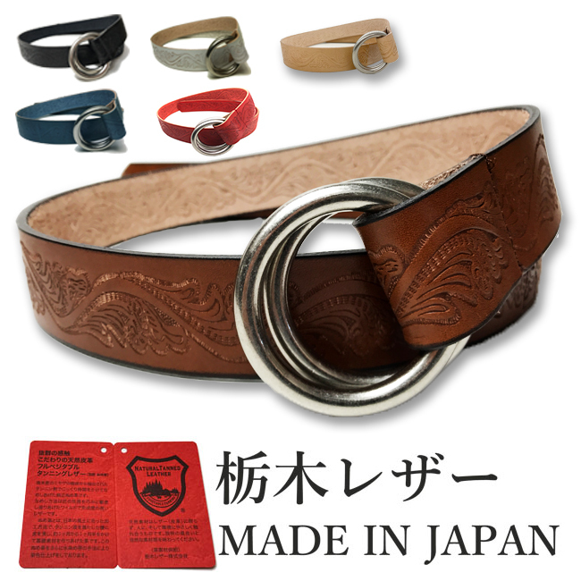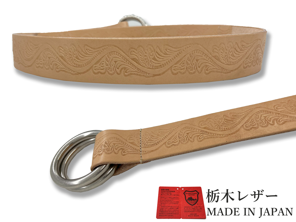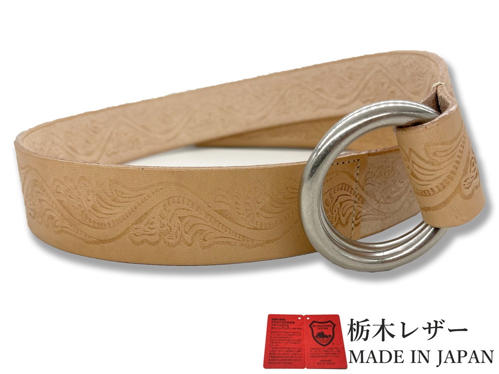新品 栃木レザー Wリング ベルト Mサイズ 型押し クラフト 日本製 本革 牛革 メンズ 国産 40mm ヌメ革 ナチュラル w011 NATURAL