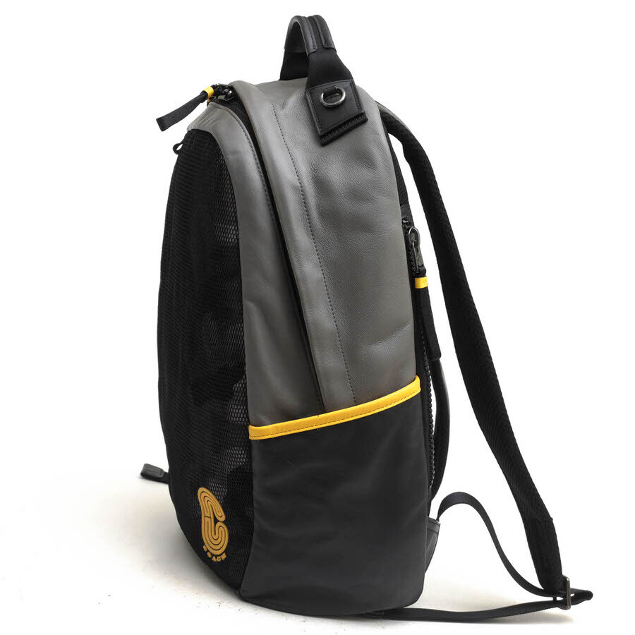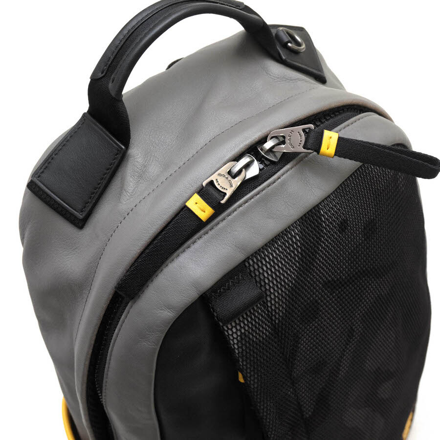 カモフラージュプリントを施したメッシュナイロンとスムースカーフレザーを使用した「Edge Backpack」。落ち着いたカラーリングで、カモフラージュ柄でありながら、都会的なデザインに仕上がっています。頑丈なファブリックライニングと、トップハンドルのデザイン。メインコンパートメントはジッパー開閉でアクセスでき、内側にはジッパーポケット、携帯電話用ポケット、その他多機能ポケットが装備されており、小物の整理に役立ちます。外側にもジッパーポケットがあり、アクセスが容易です。ストラップは調整可能で、体にフィットする快適な背負い心地を実現できます。 |