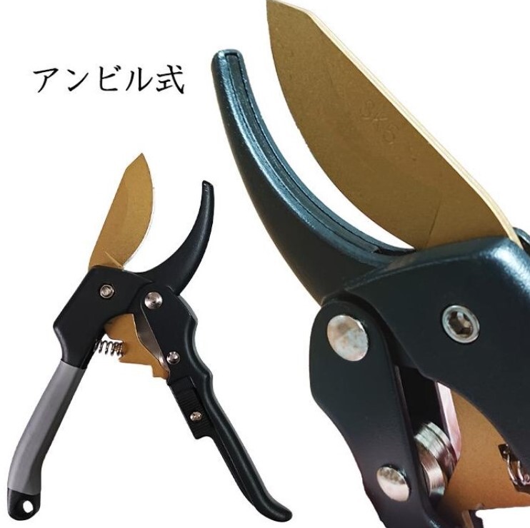 太い枝でも楽に切れるアンビル型の剪定鋏です。