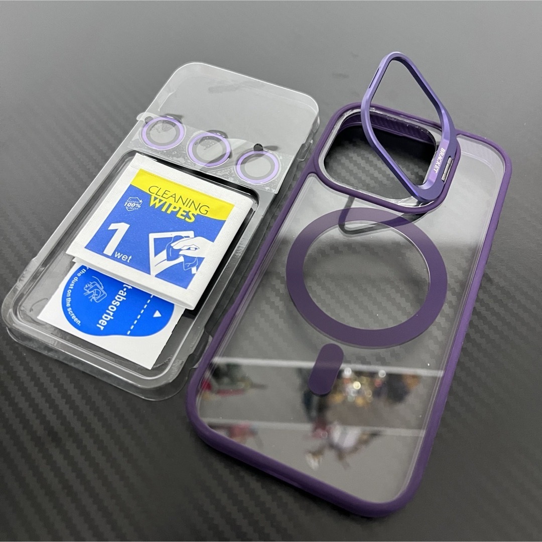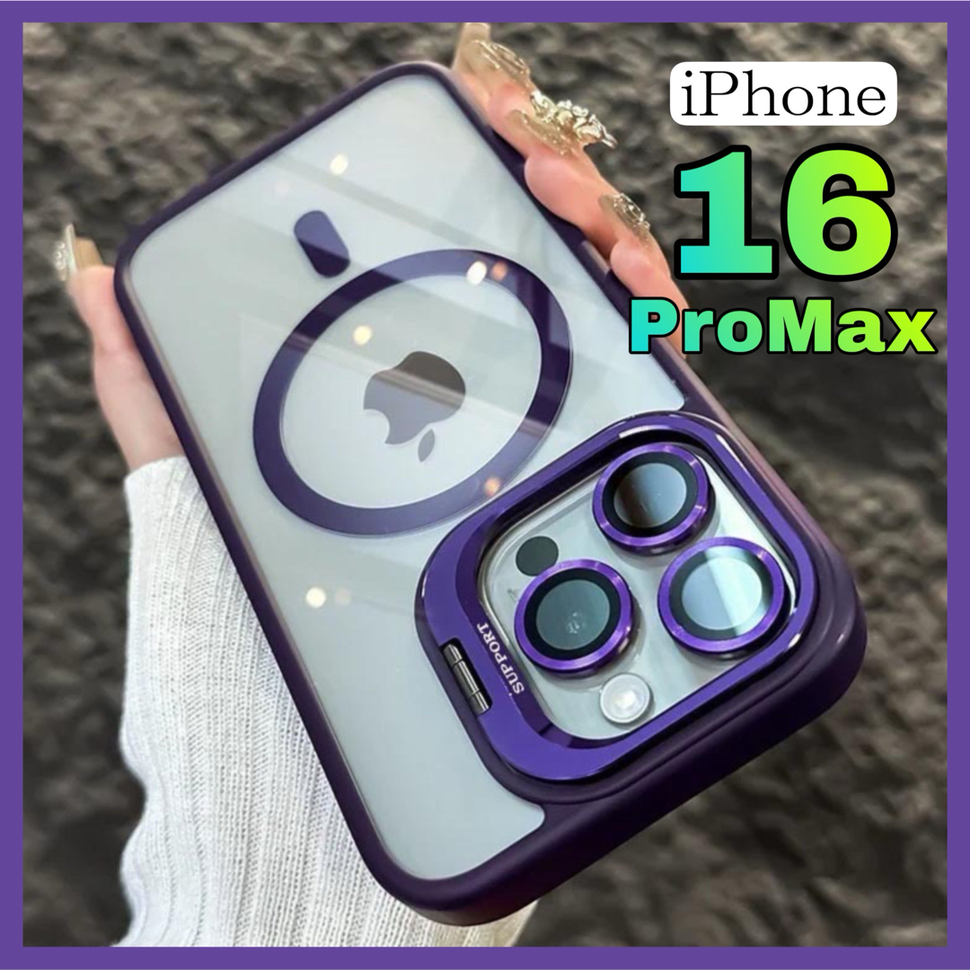 iPhone16ProMaxケース magsafe対応 スタンド機能 紫色 おしゃれ 高級感 パープル ビジネス 韓国 レンズフィルムカバー 指紋防止