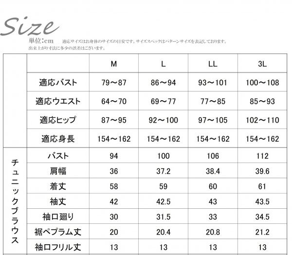 サイズ表をご覧ください。