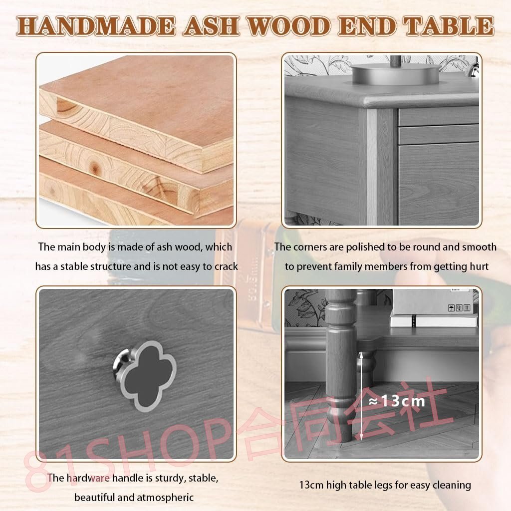 【手作りのアッシュウッドエンドテーブル】:このナイトスタンドの本体はアッシュウッドで作られており、安定した構造で割れにくいです。角は丸く滑らかに磨かれており、家族が怪我をするのを防ぎます。ハードウェアハンドルは頑丈で安定しており、美しく雰囲気があります。お手入れが簡単な高さ13cmのテーブル脚