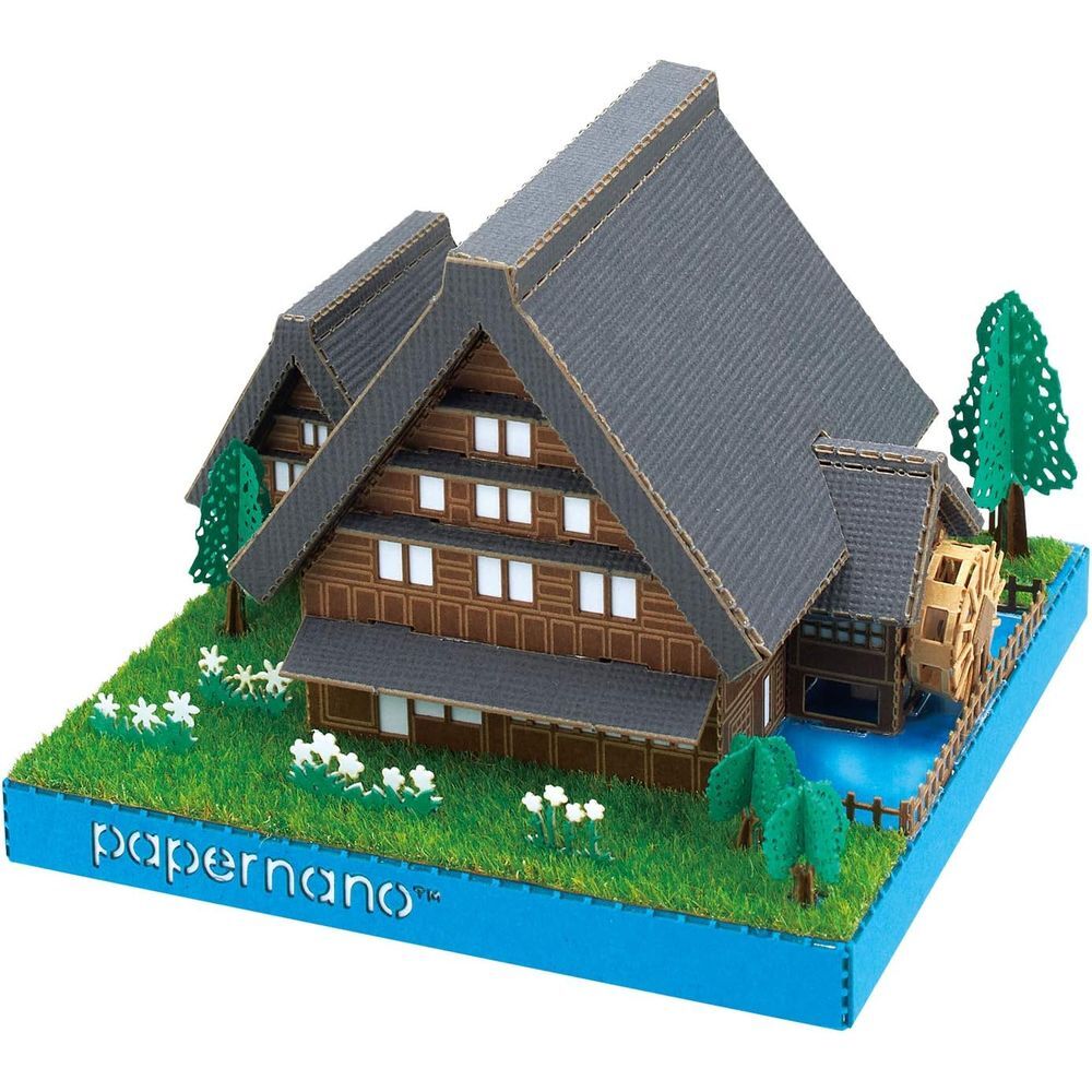 ペーパーナノの『白川郷』は茅葺屋根の建物や花々が咲く様子、のどかな田園地帯を表現し、作って世界遺産が楽しめるペーパークラフトです。