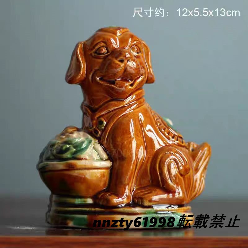 置物 十二支の陶器アート 中国唐三彩工芸品 - 戌(イヌ)