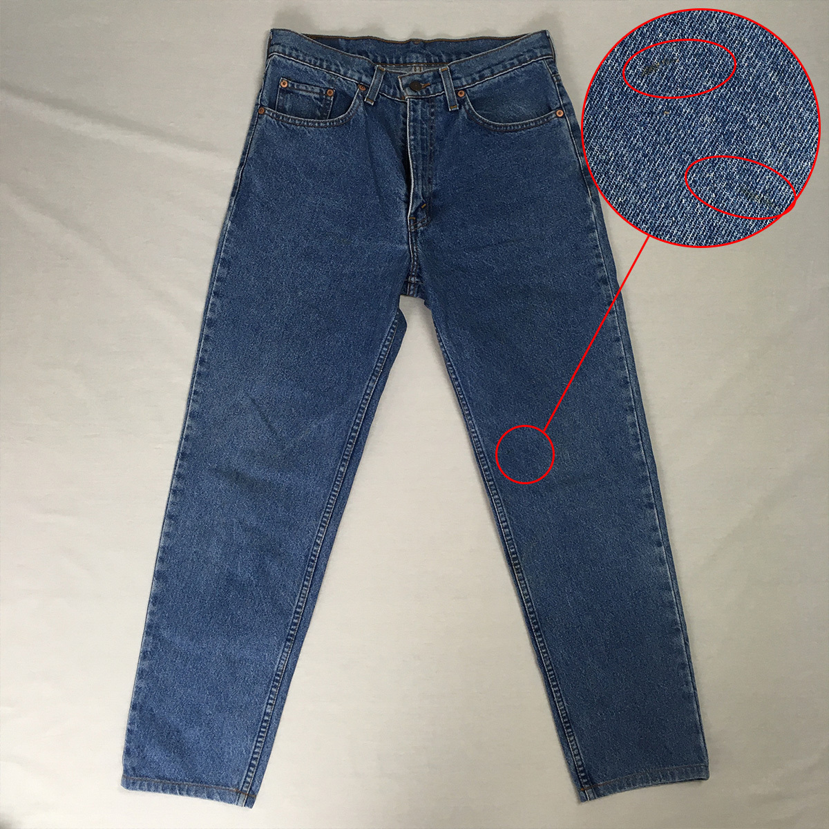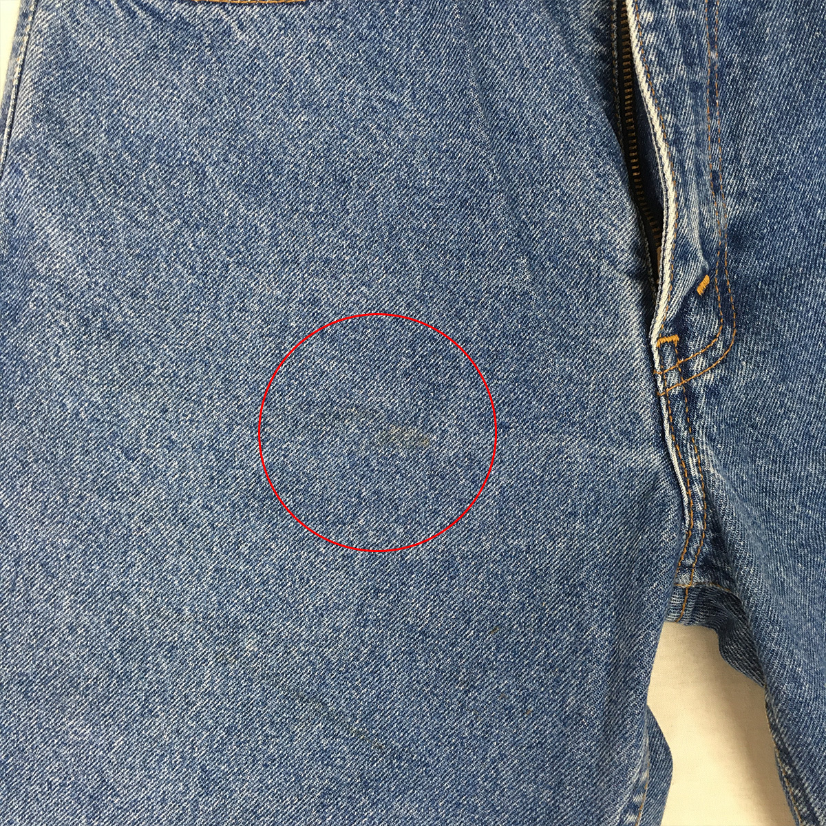 正面右足の付け根あたり、左膝あたりに薄い汚れがあります。