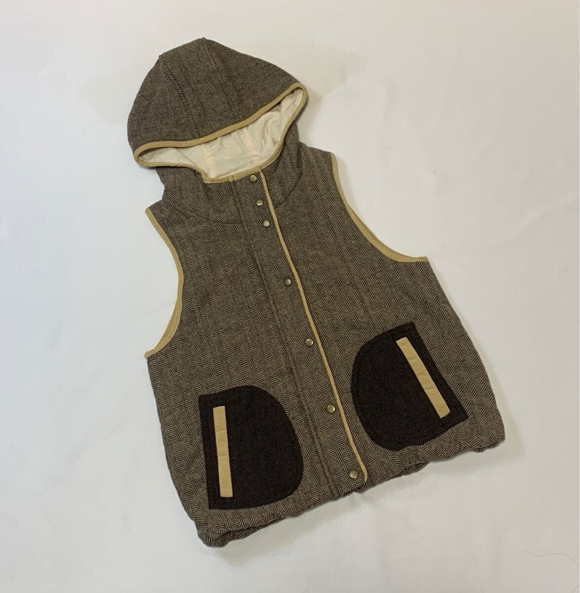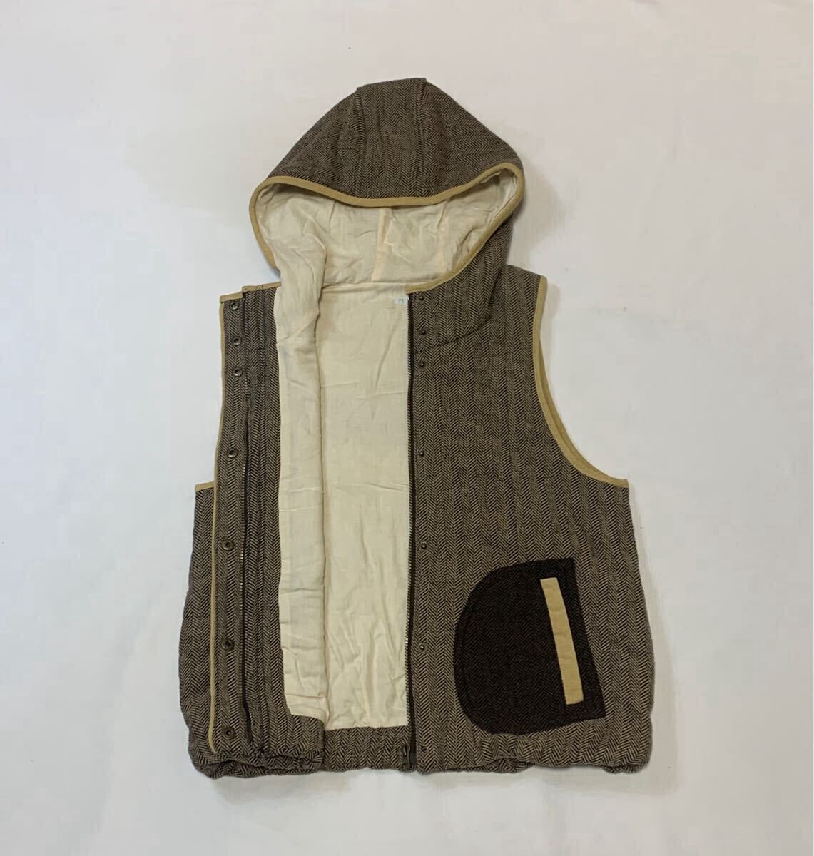 ・ヘンリーボーンストライプ柄 中綿入り フード付き ベストの出品になります。