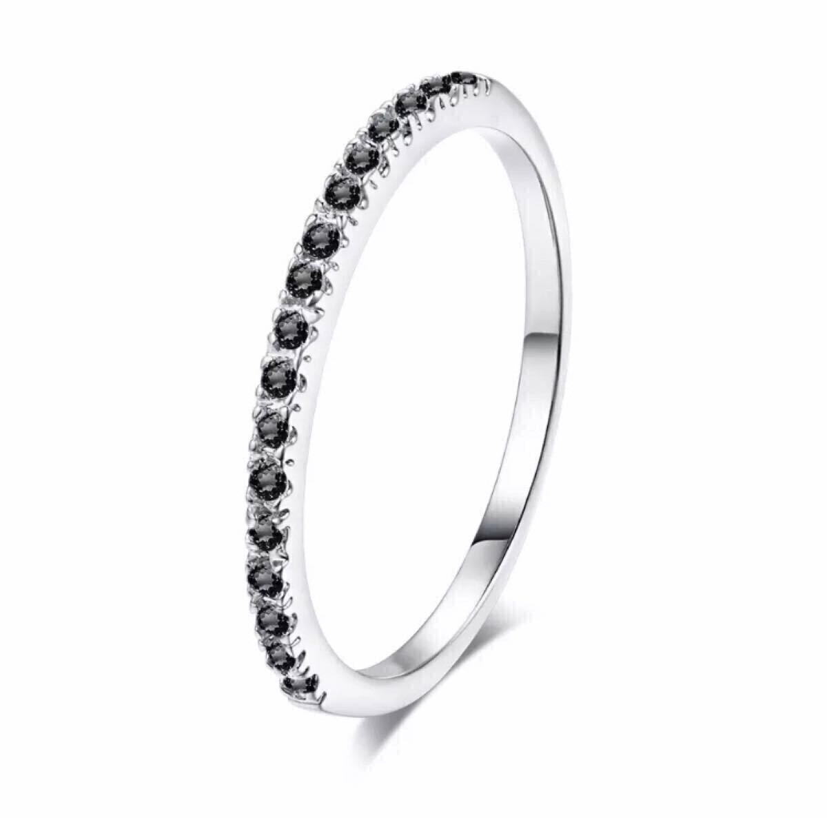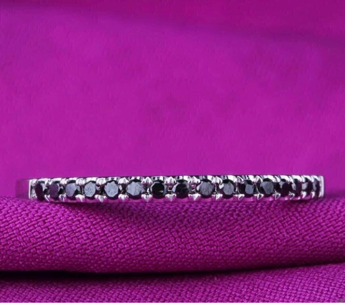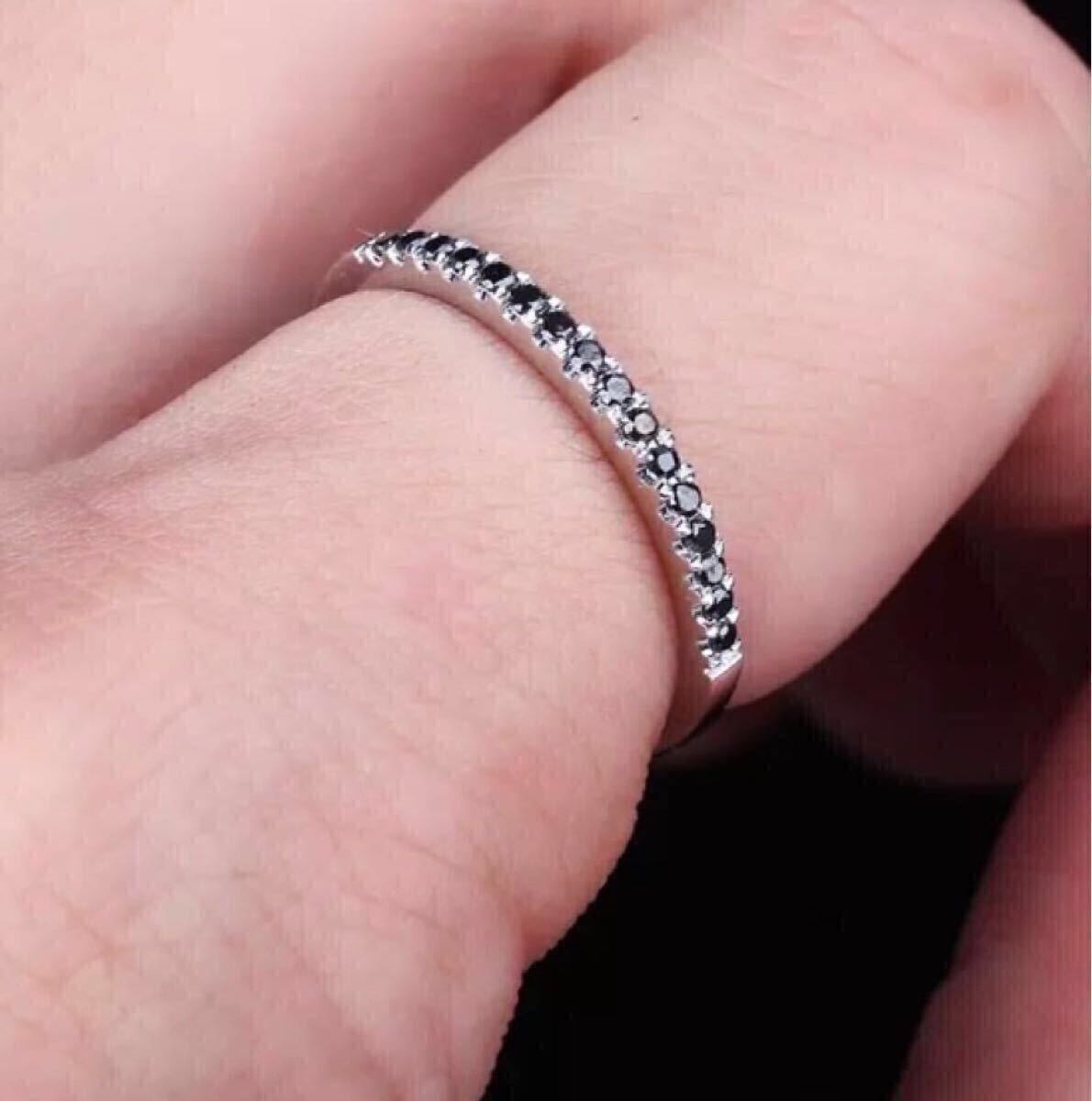 ホワイトゴールドに艶のあるAAACZブラックダイアモンドをあしらった、シンプルなリングです。細身のデザインで重ね付けにもおすすめです。