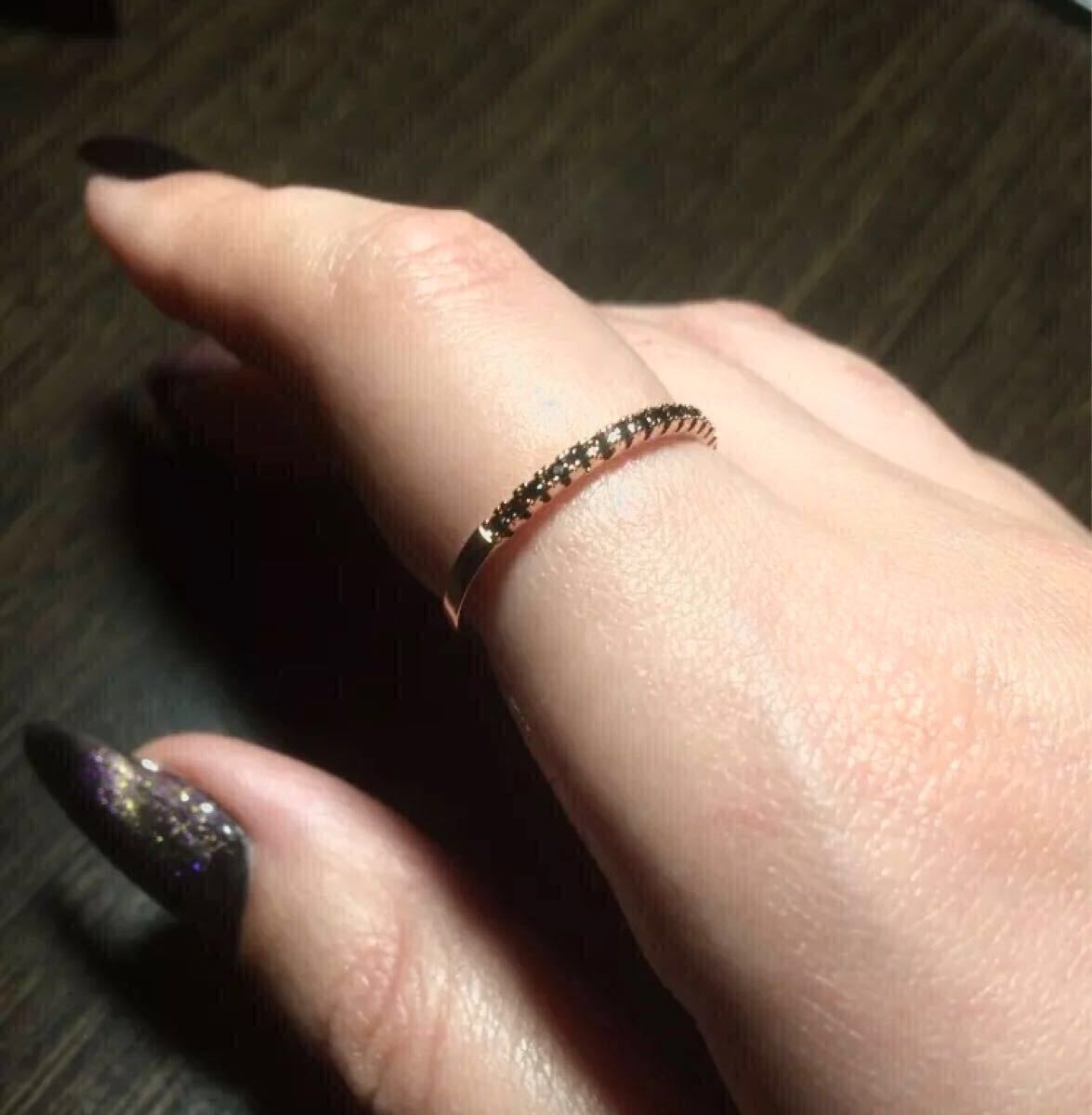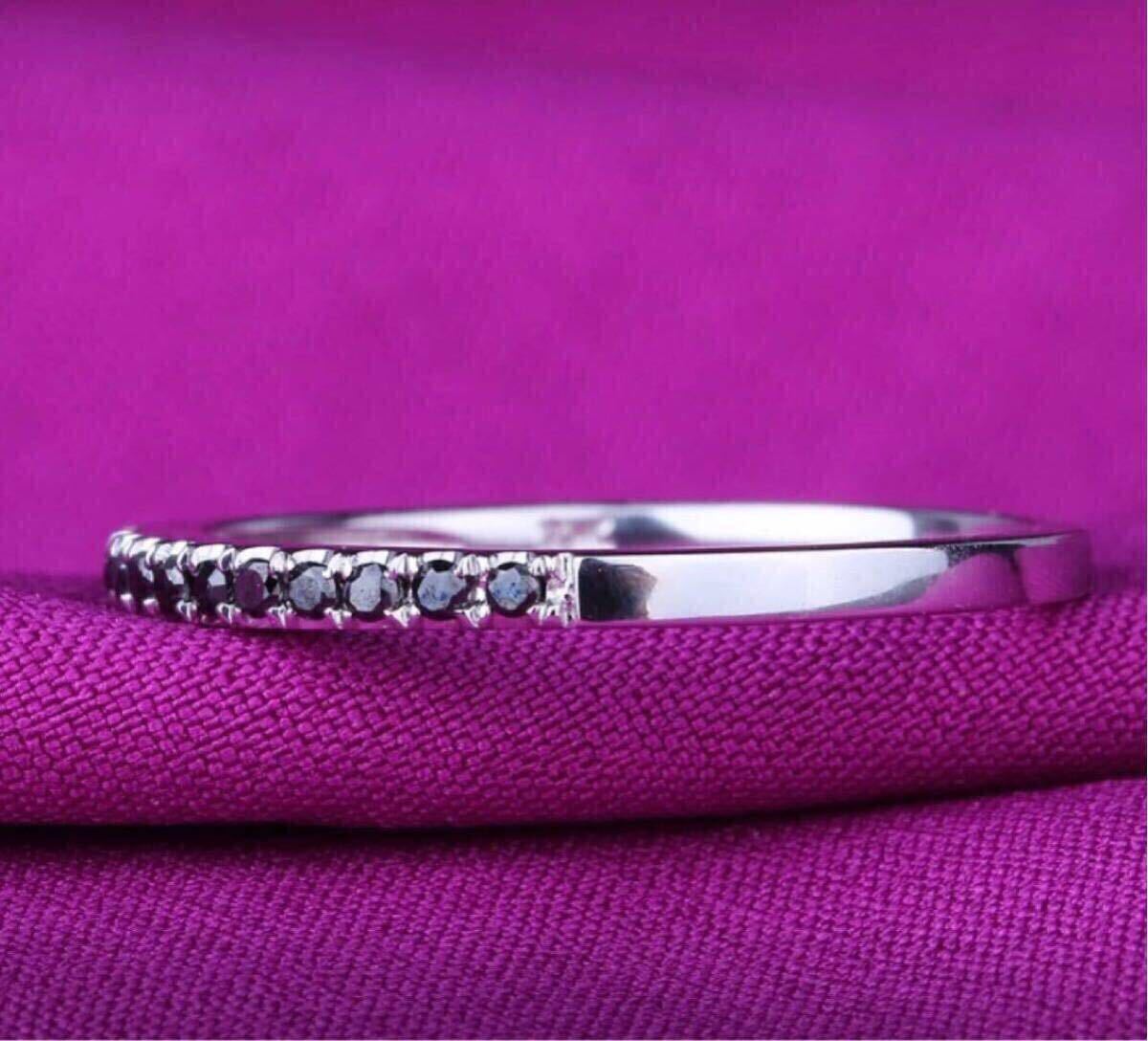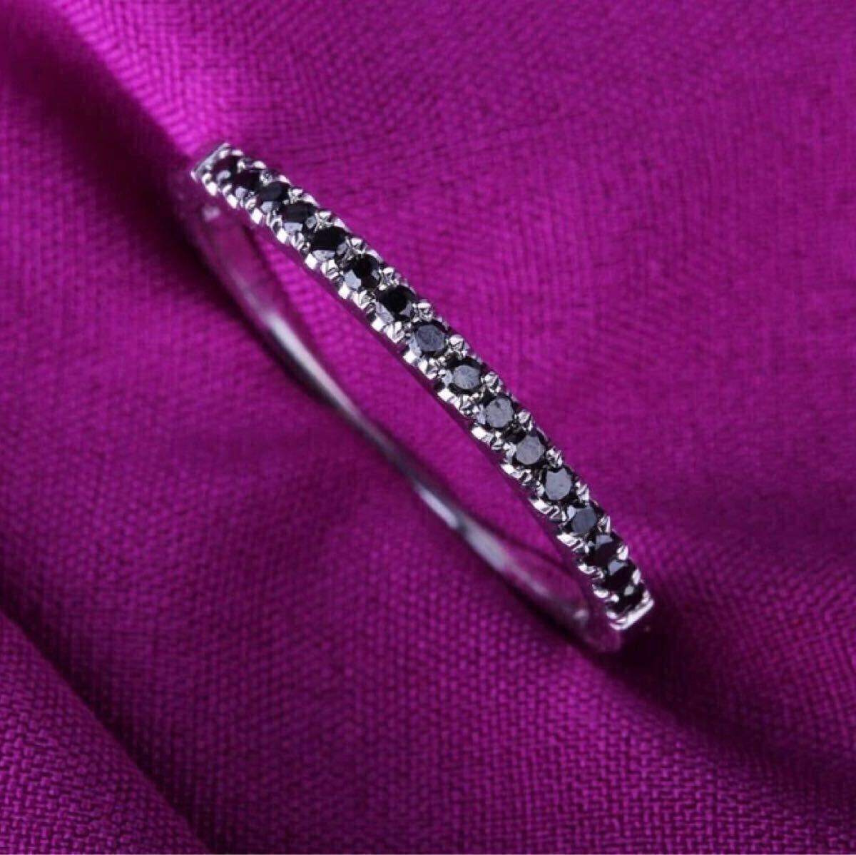 ホワイトゴールドに艶のあるAAACZブラックダイアモンドをあしらった、シンプルなリングです。細身のデザインで重ね付けにもおすすめです。