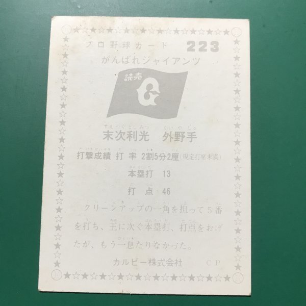 1976年 カルビー プロ野球カード 76年 223番 巨人 末次 ※キズ・汚れ・黄ばみ多め 【767】