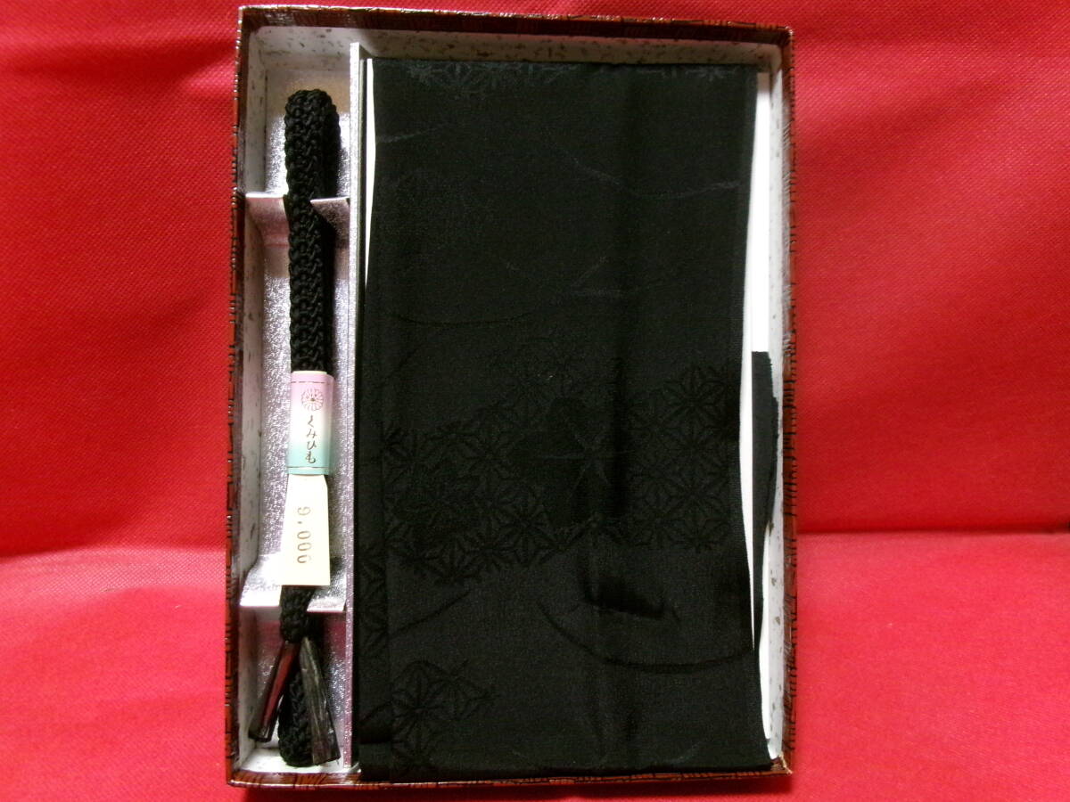 未使用品 和装小物 ホリケン 綸子帯揚 組ひも帯締 2点セット 黒 リメイクにも